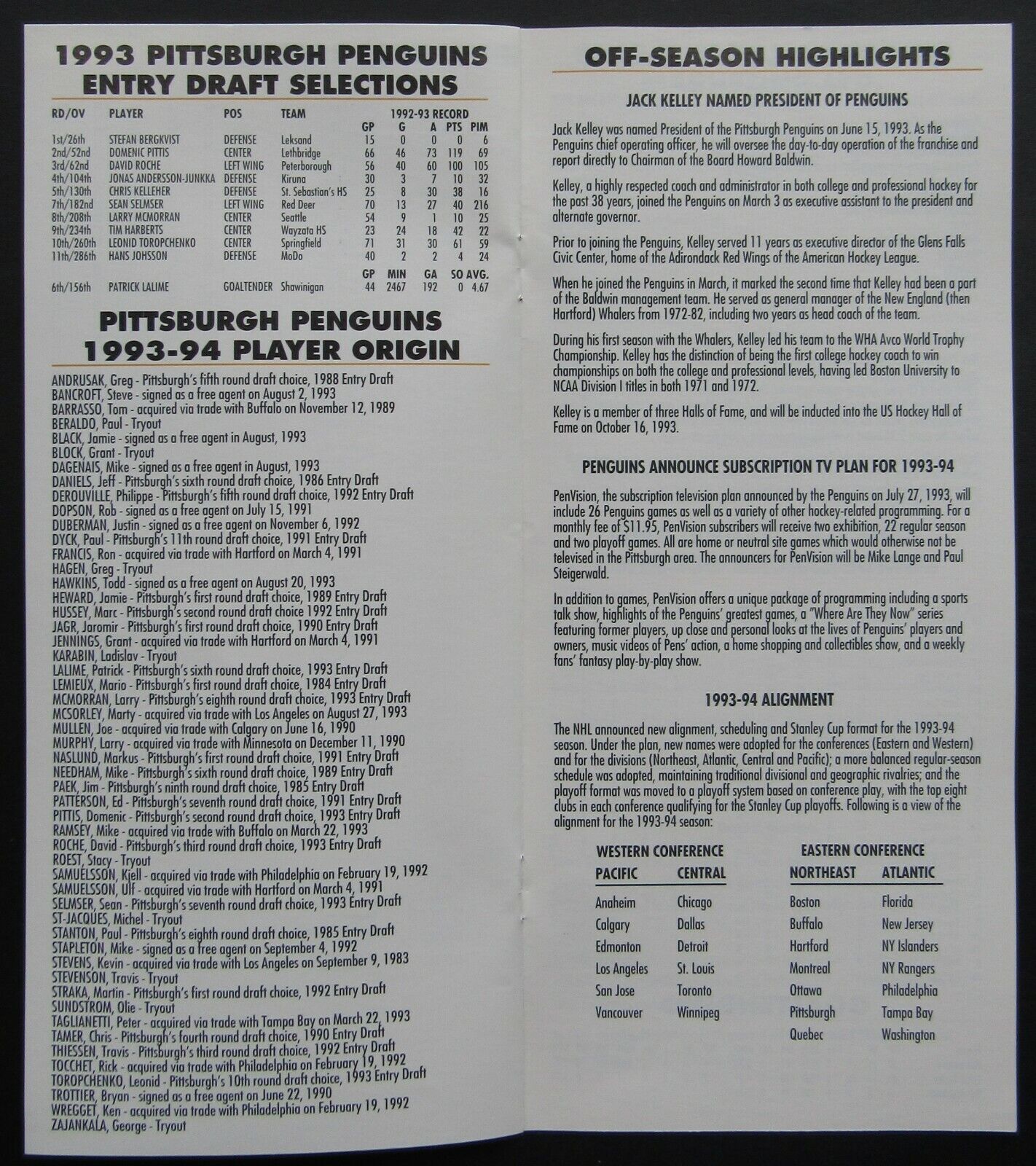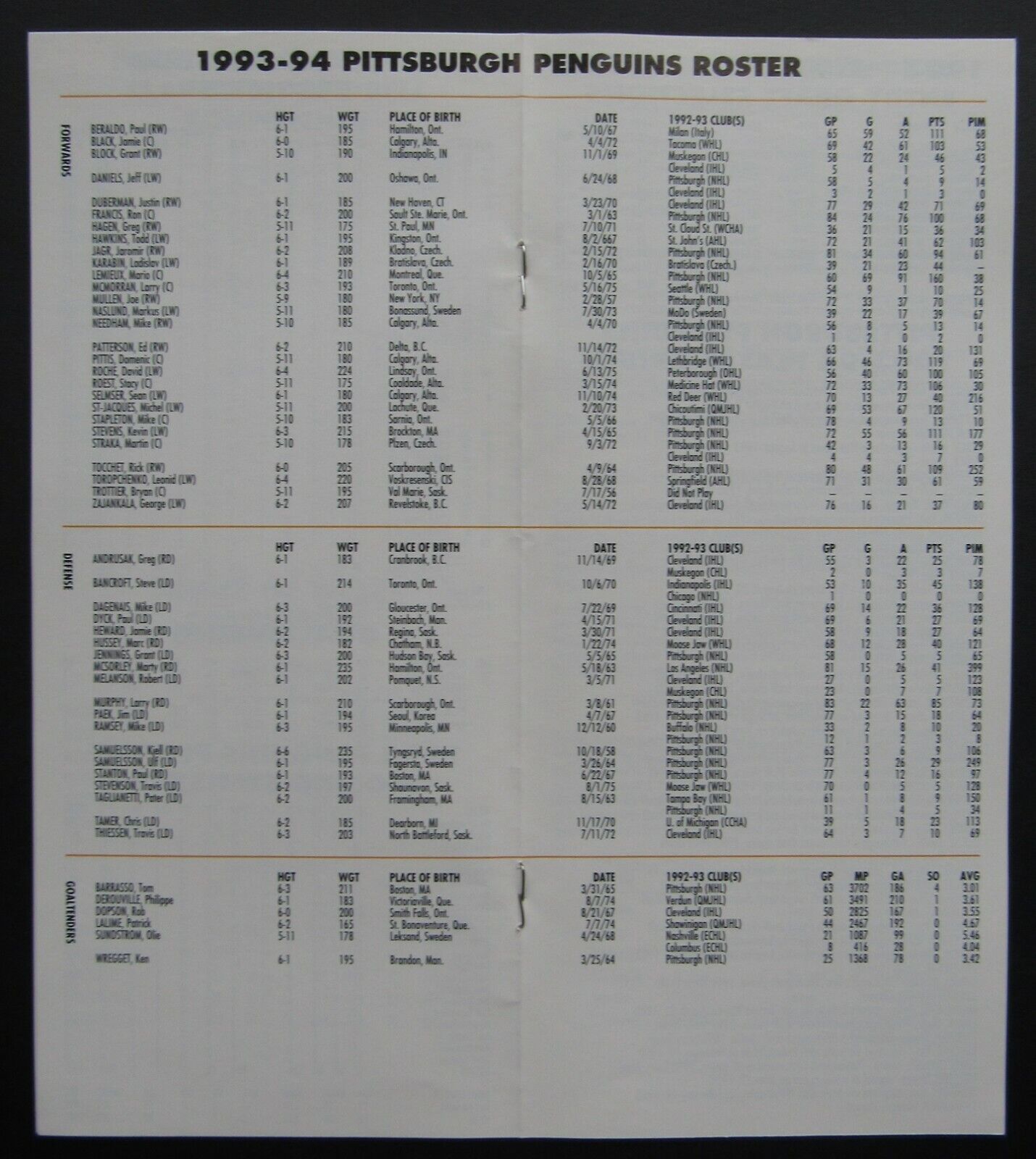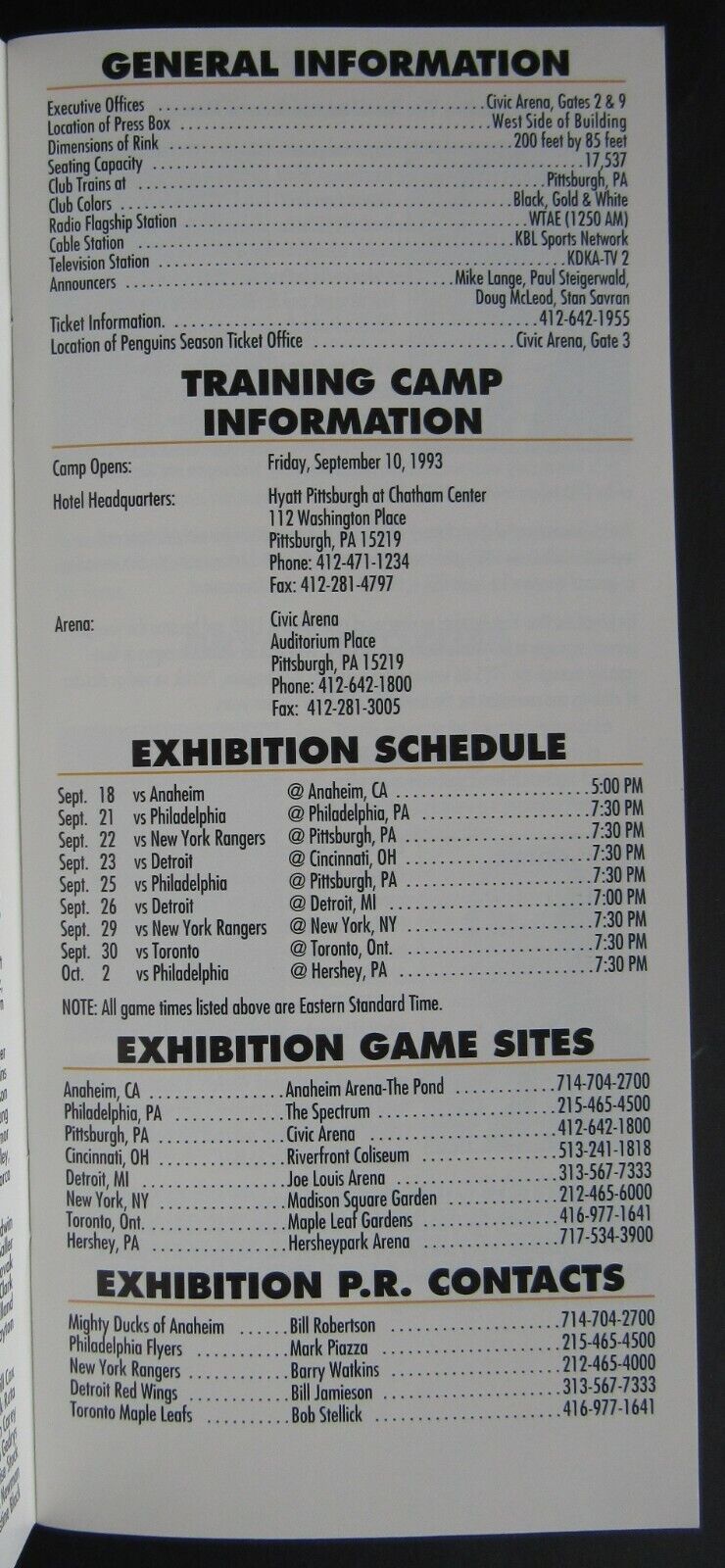 • 1993 / 1994 NHL Pittsburgh Penguins Training Camp Guide