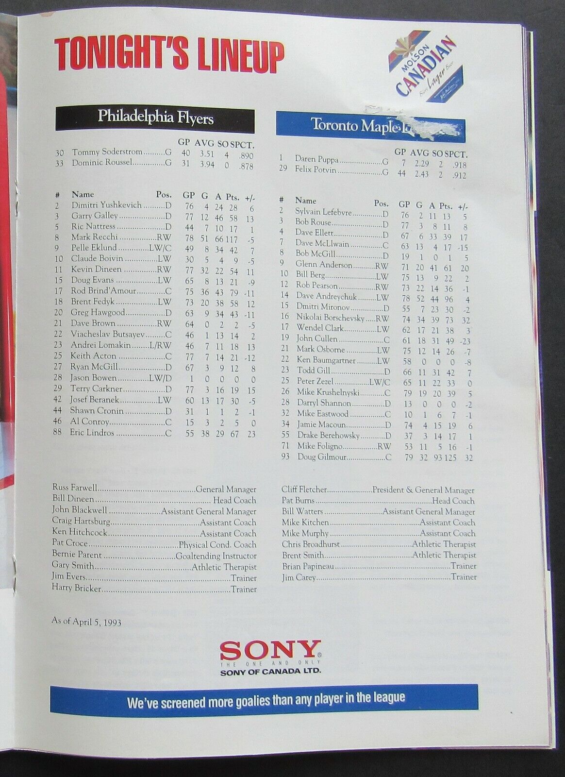 • April 10, 1993 NHL Program @ Maple Leaf Gardens, Toronto