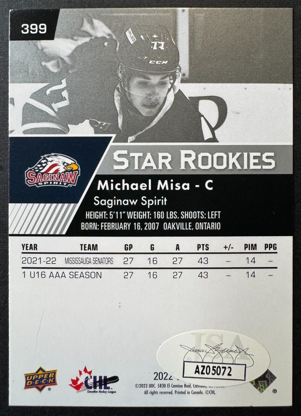 - 2022/23 Michael Misa Signed Upper Deck Star Rookies Card JSA