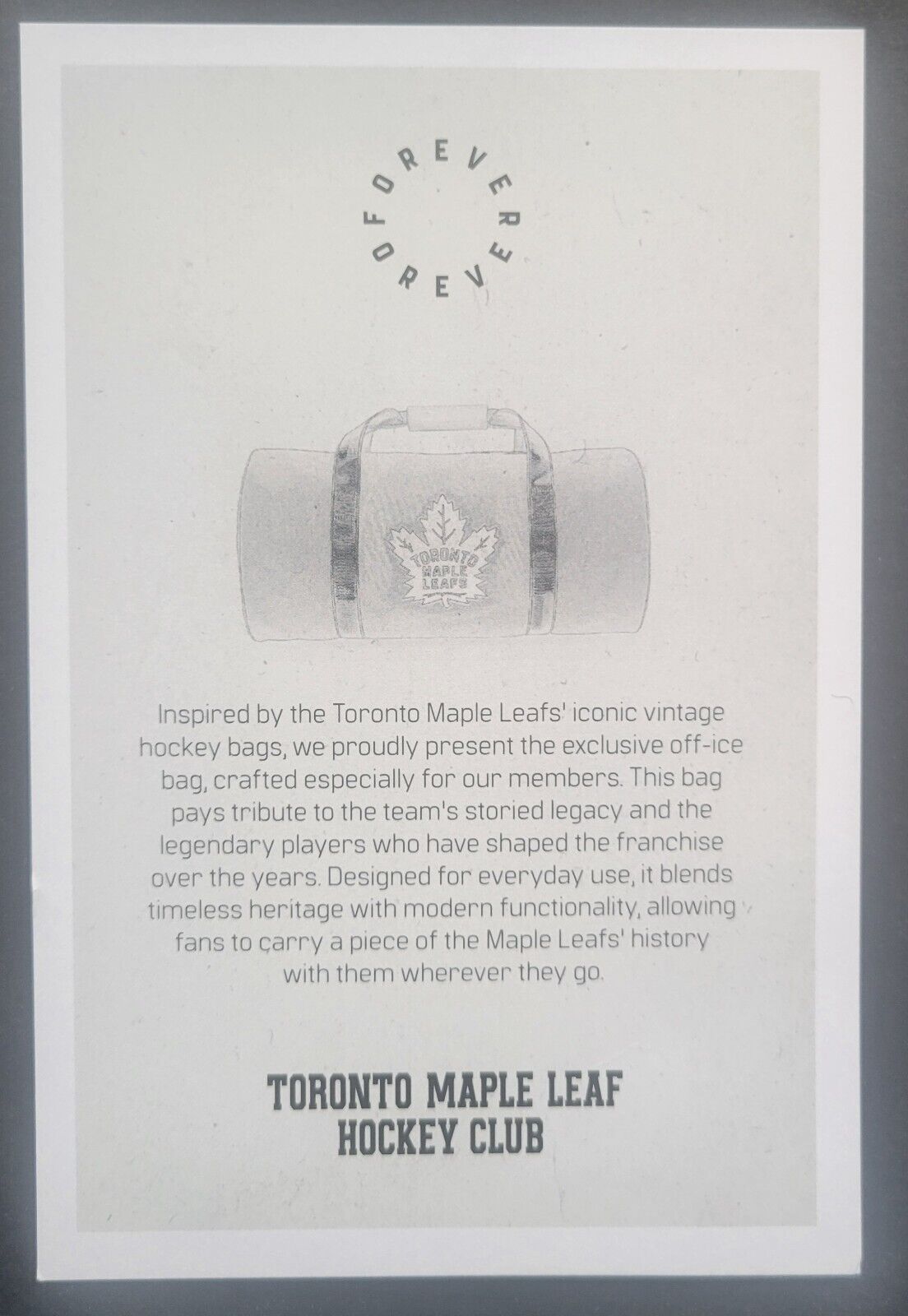 - One gym bag and one string bag given by to Toronto Maple Leafs season ticket holders for the 2024 season