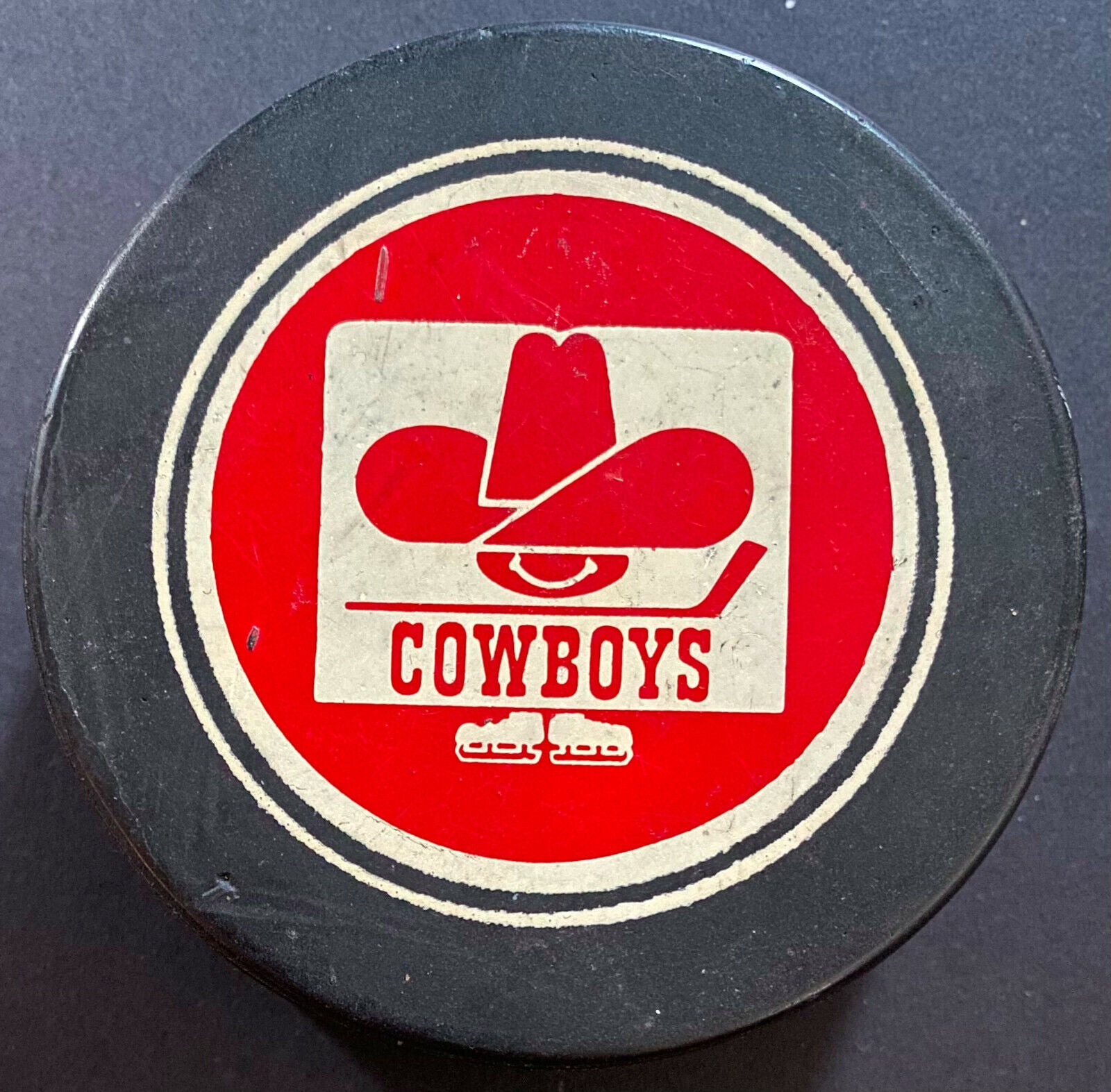 - Calgary Cowboys WHA game used blank back puck 1975-1977. Made in Canada