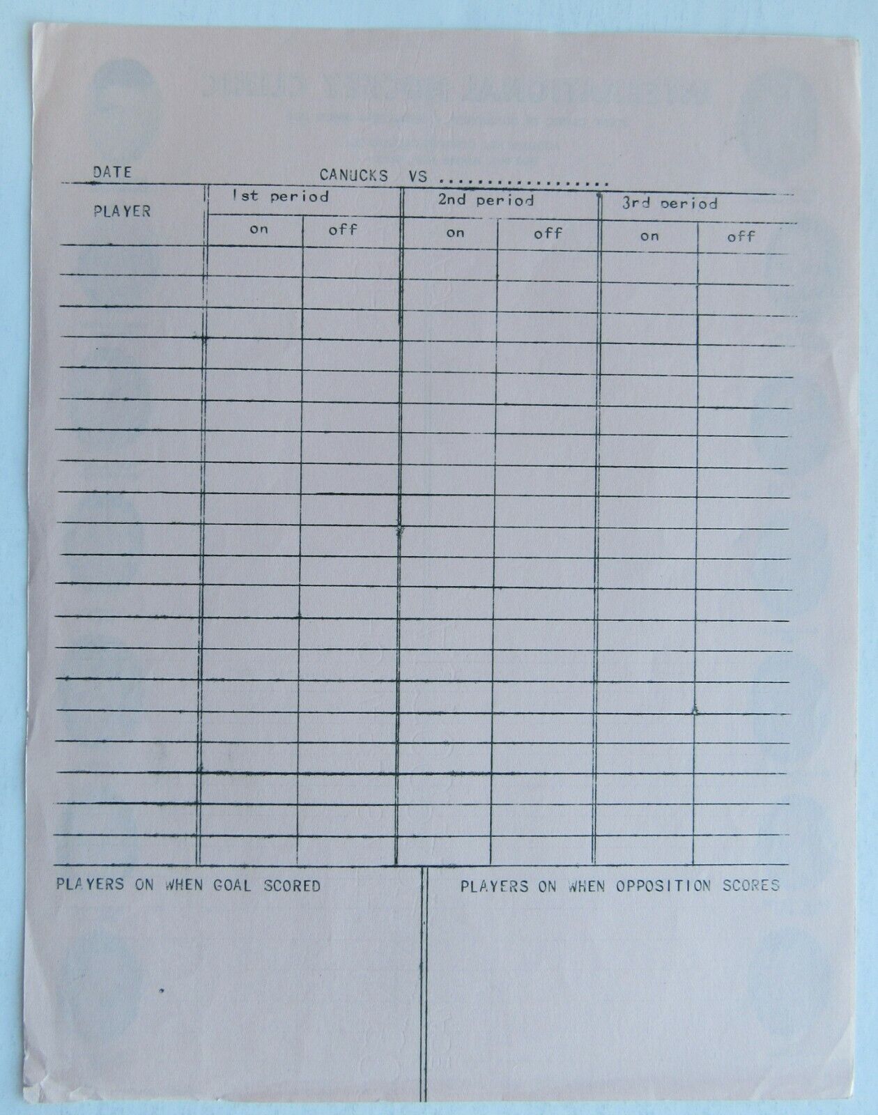 - Circa 1960 Vintage International Hockey Clinic (Moose Jaw) Scoresheet
