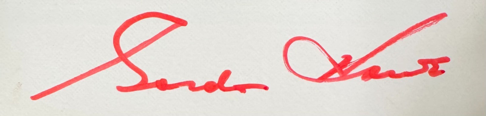 • Excellent condition; some faint discoloration in one corner otherwise minimal signs of visible handling wear. Autograph presents well with no fading, bleeding or smudging
