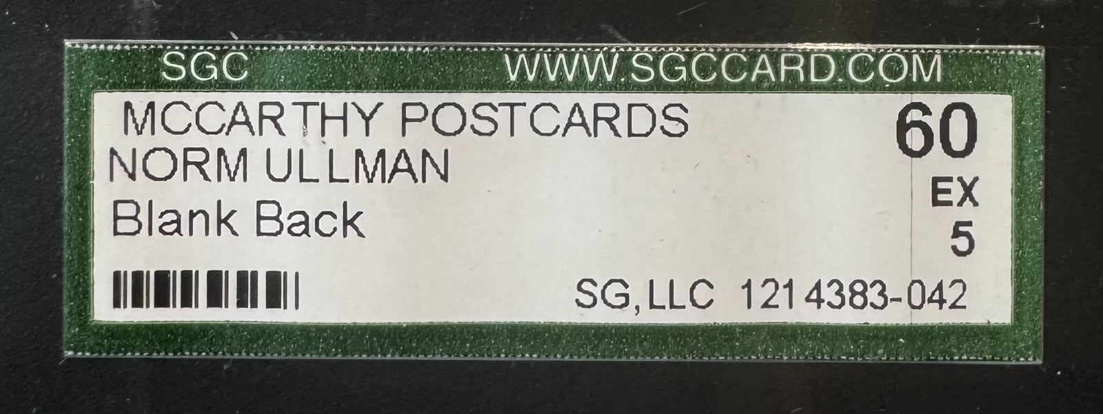 - Early 1960s Norm Ullman HOFer McCarthy Detroit Red Wings #60 postcard