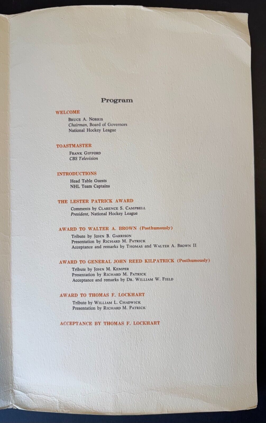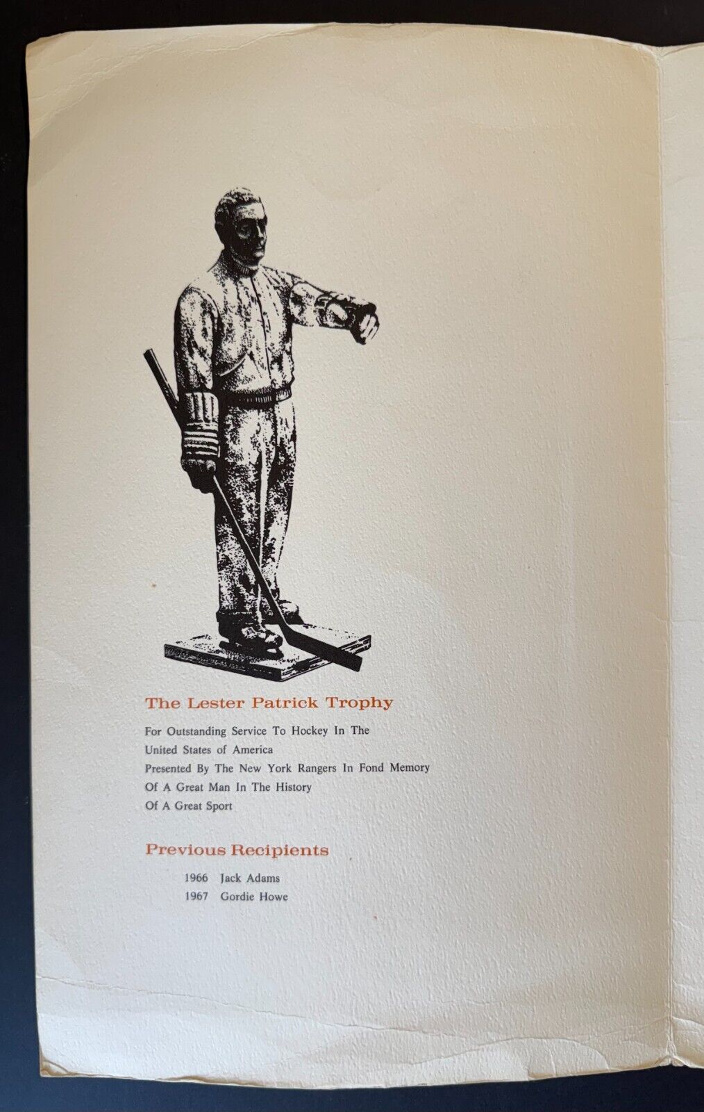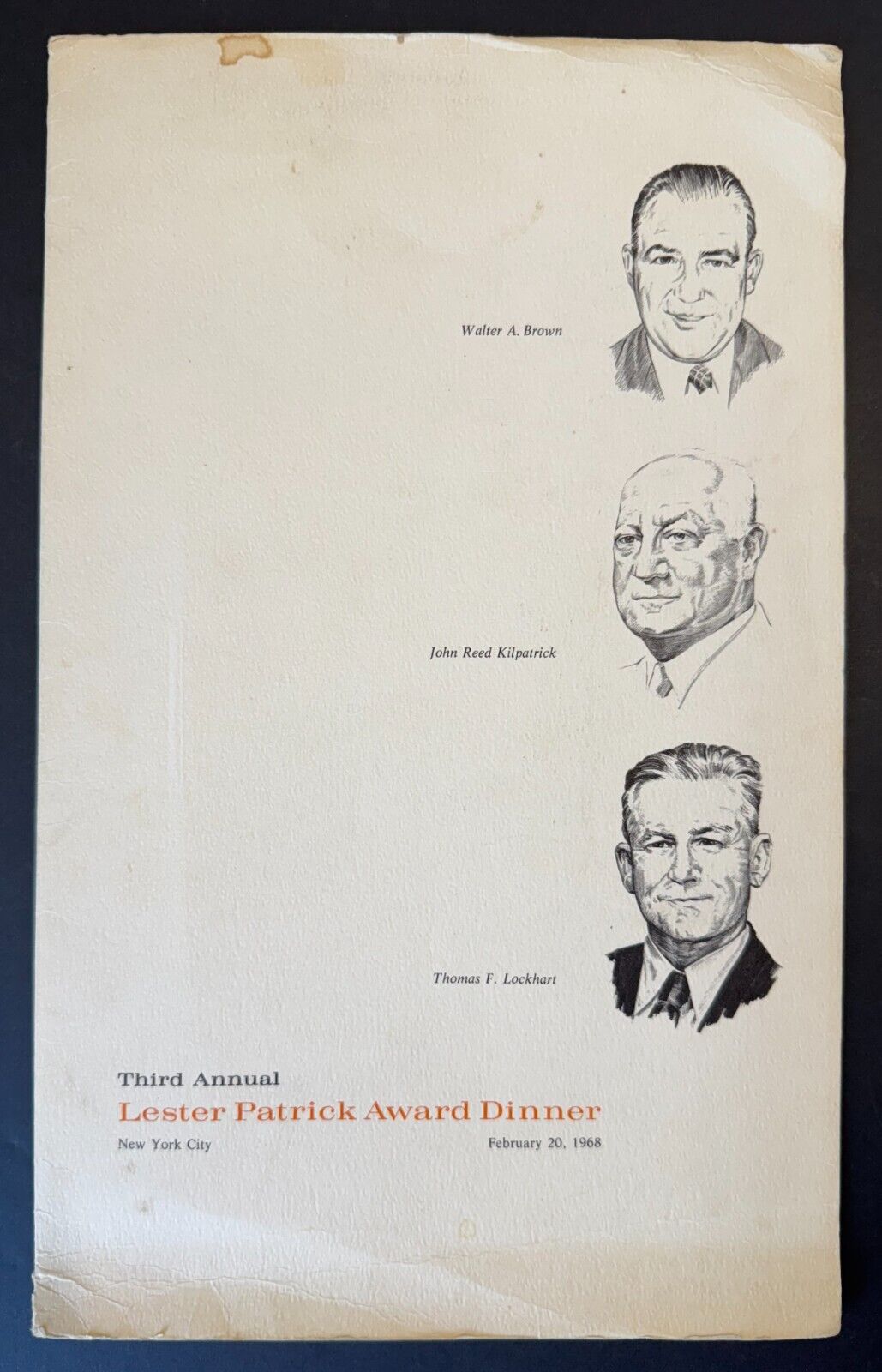 - 3rd annual Lester Patrick dinner program held in New York city Feb. 20, 1968 signed by HOFer Jean Beliveau