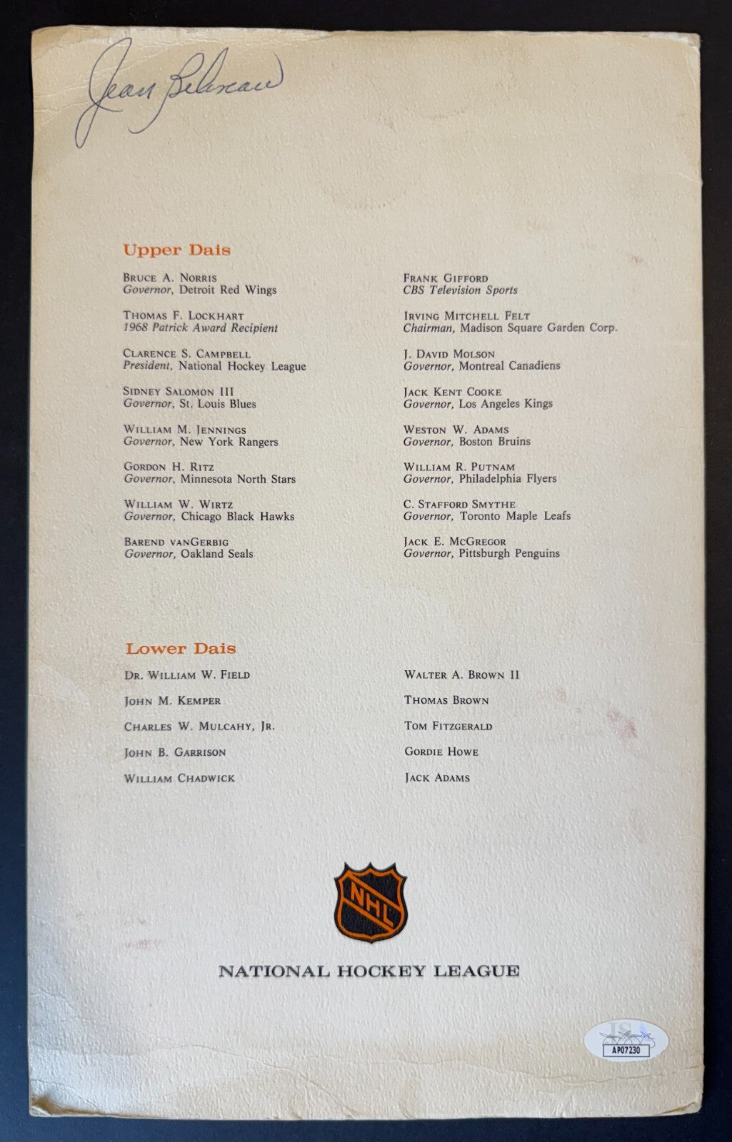 - Jean Beliveau Signed Autographed Lester Patrick Award Dinner Program JSA