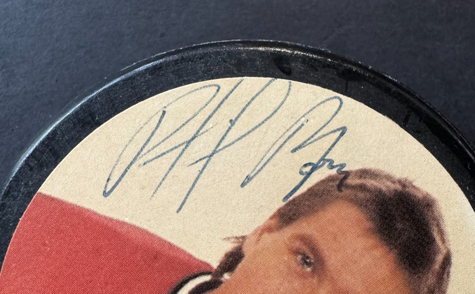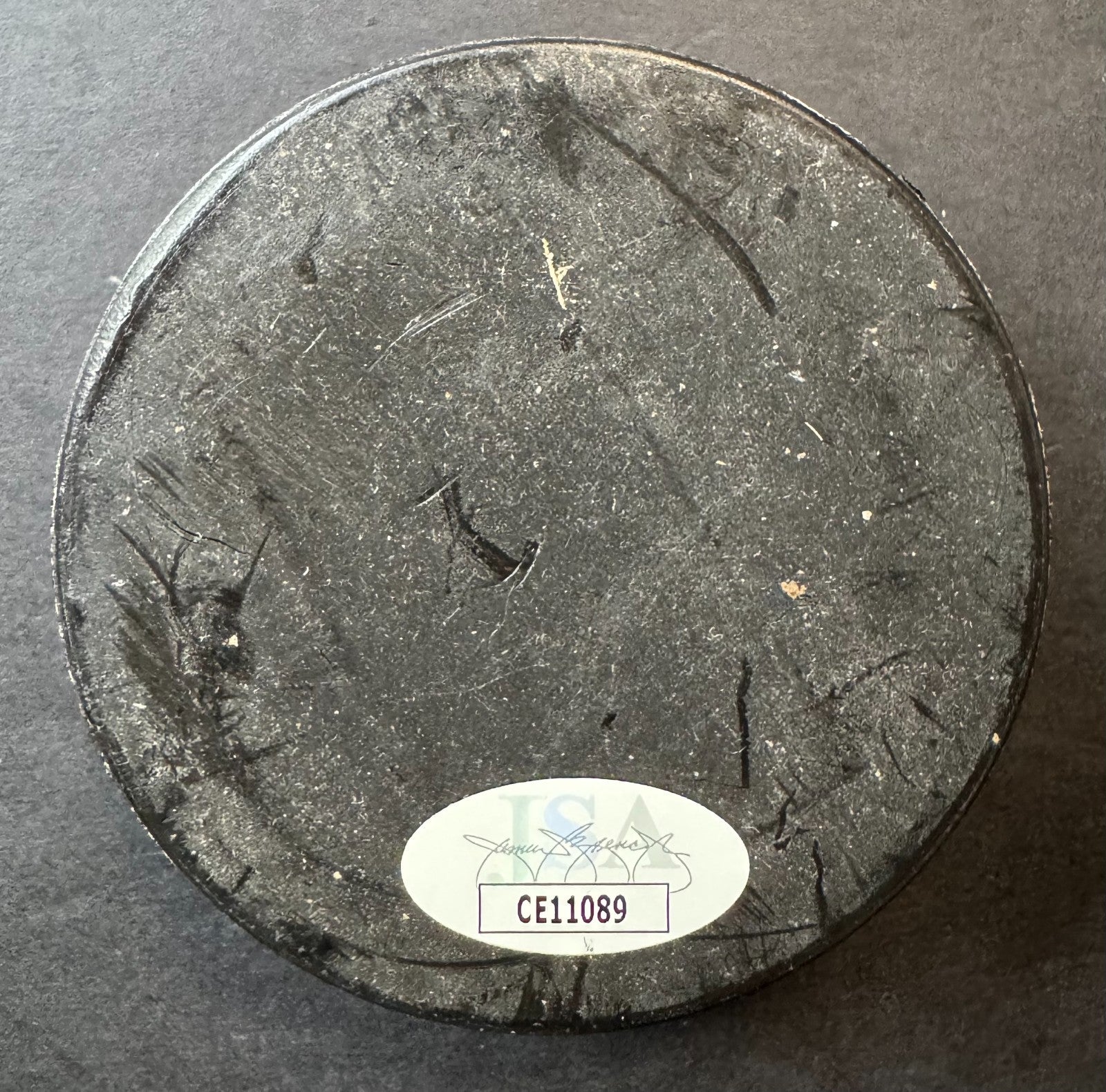 - Excellent condition; graphic displays little to no wear. Puck displays minimal signs of visible handling wear. Autograph presents well with no fading or smudging