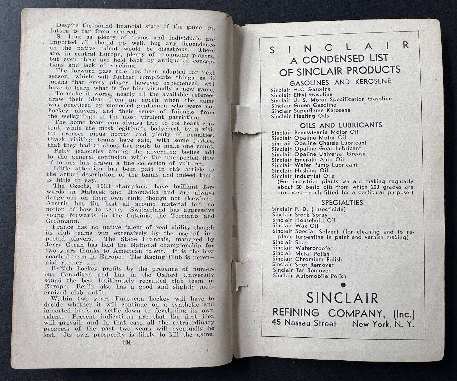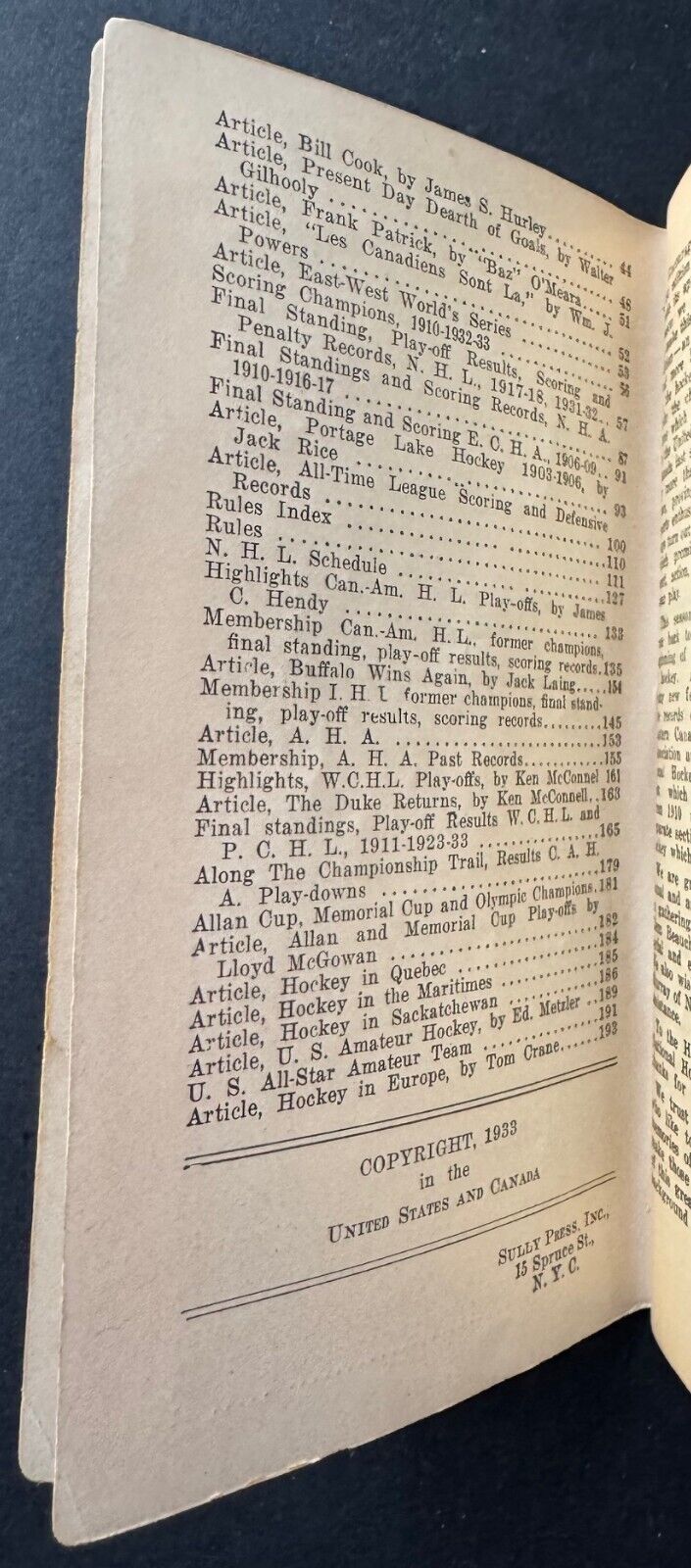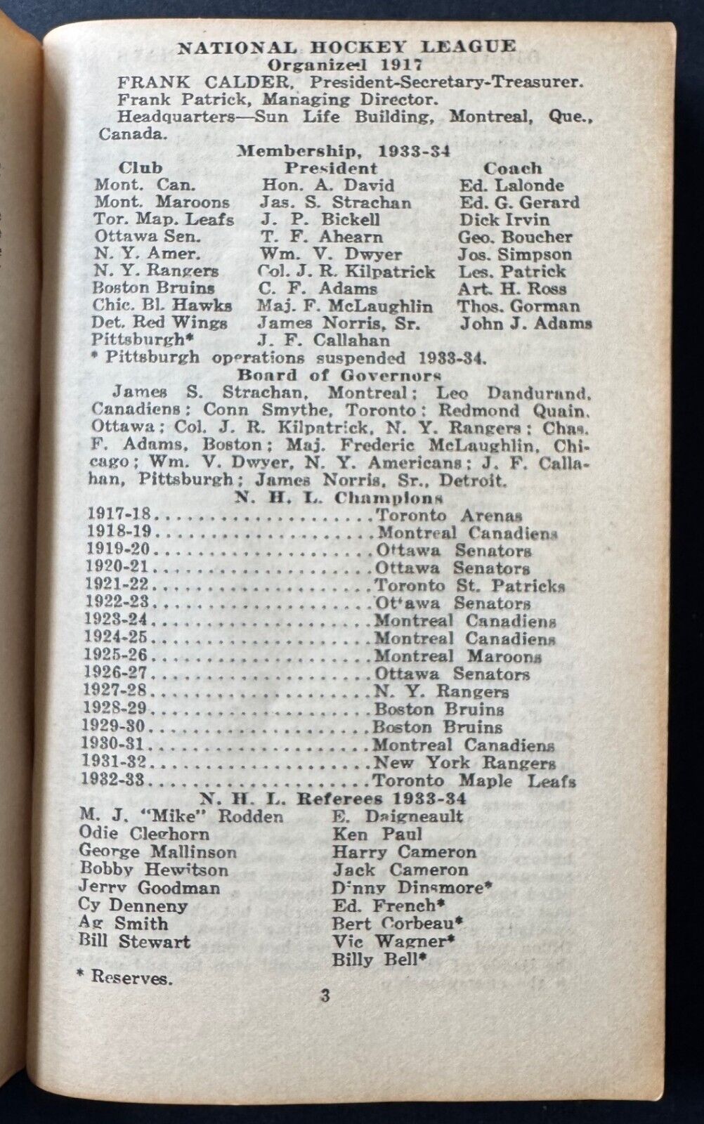 Second James C. Hendy Official Hockey Guide 1933-34 NHL Stats Records League