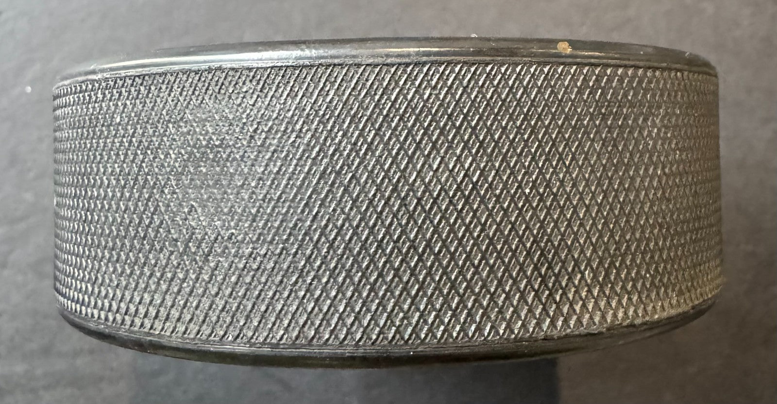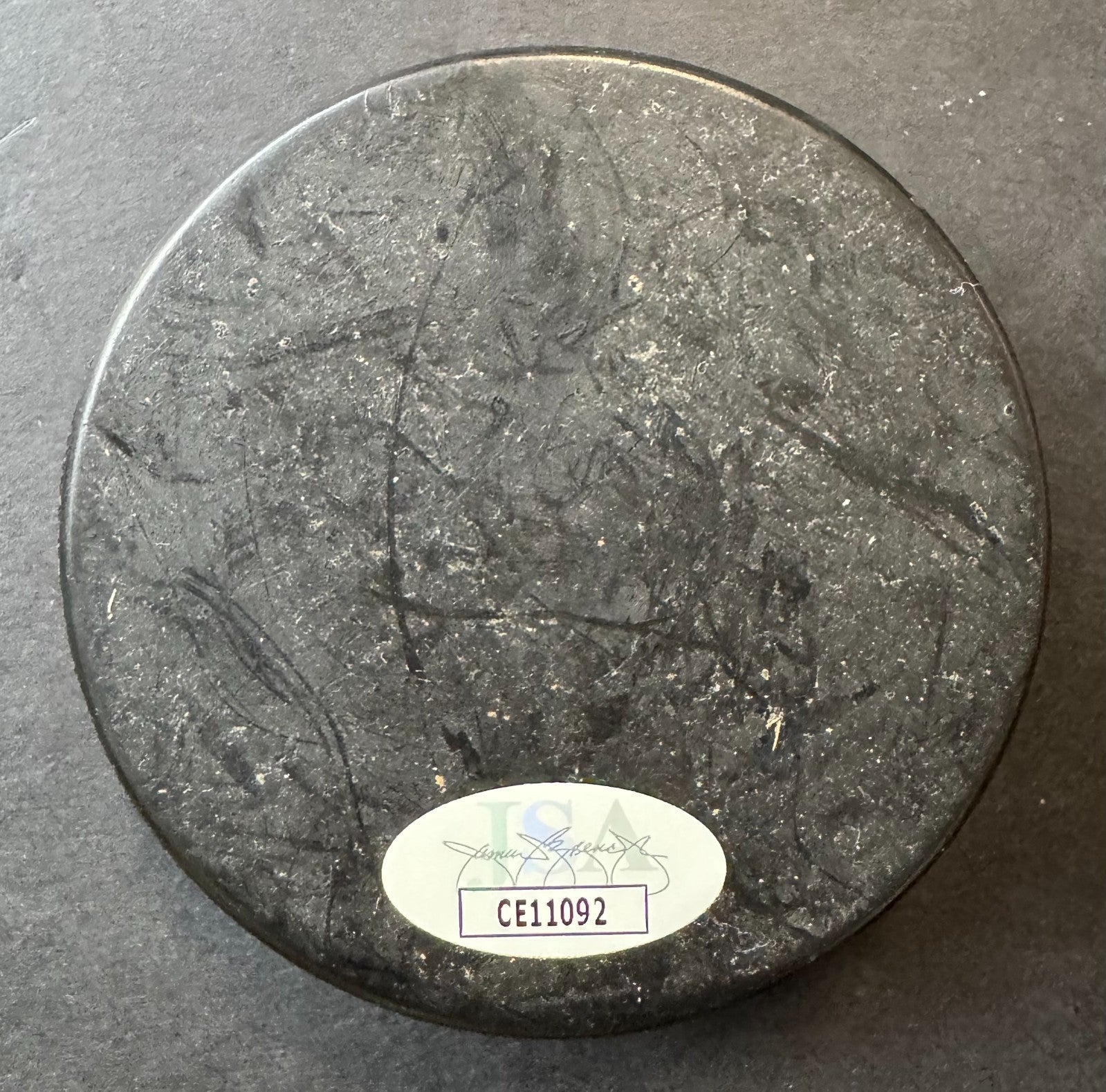 - Excellent condition; graphic displays little to no wear. Puck displays minimal signs of visible handling wear. Autograph presents well with no fading or smudging