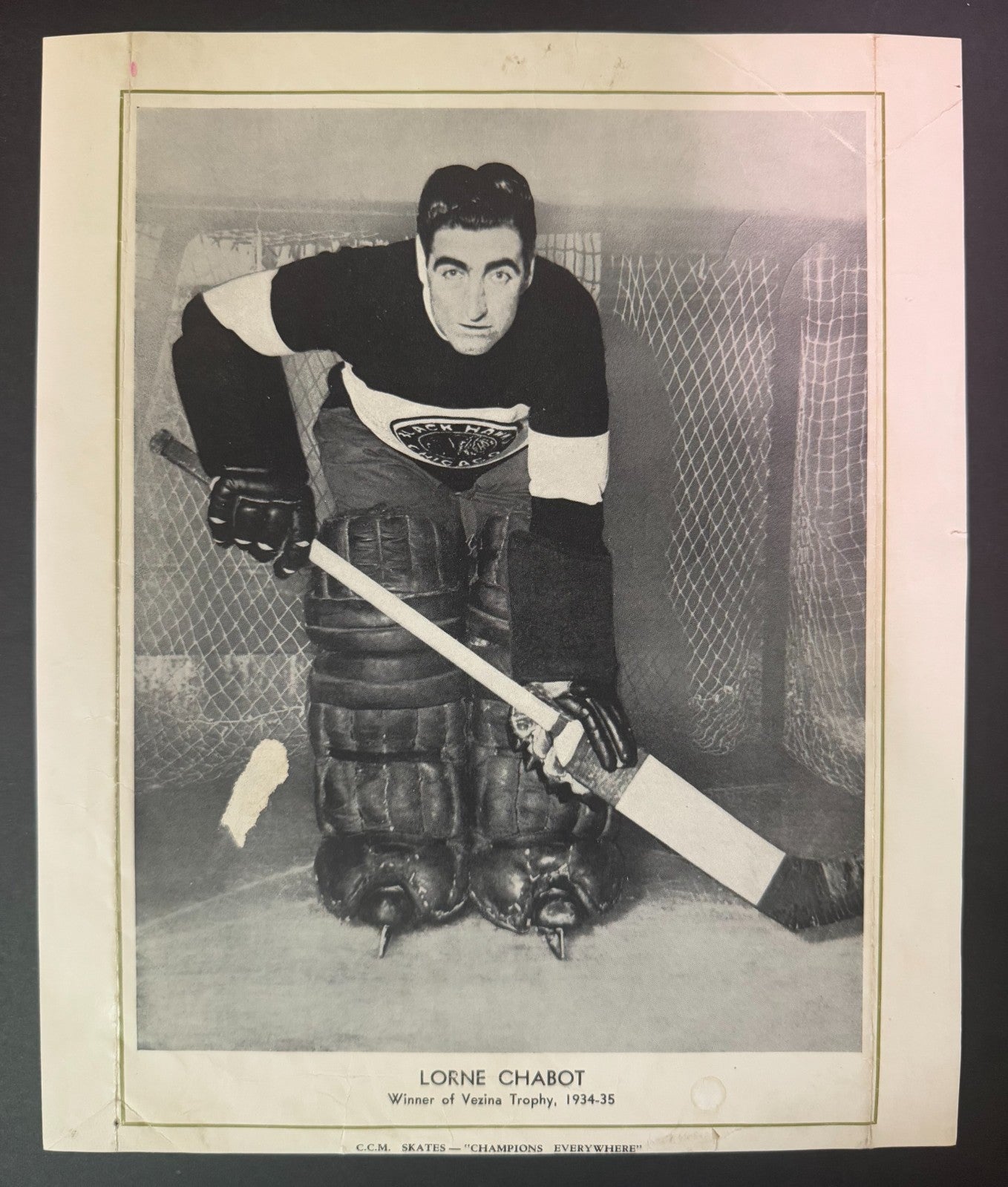 - 1935 CCM Premium Chicago Blackhawks Lorne Chabot Goalie Photo