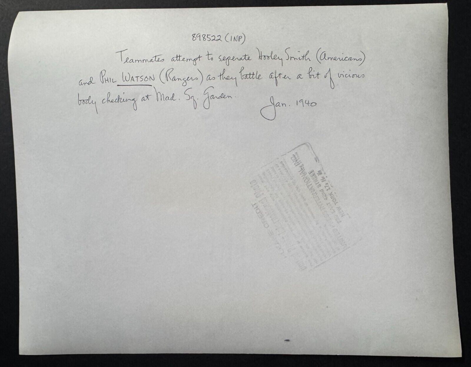 1940 Type 1 Photo Phil Watson Fighting Hooley Smith Hockey NHL Vtg