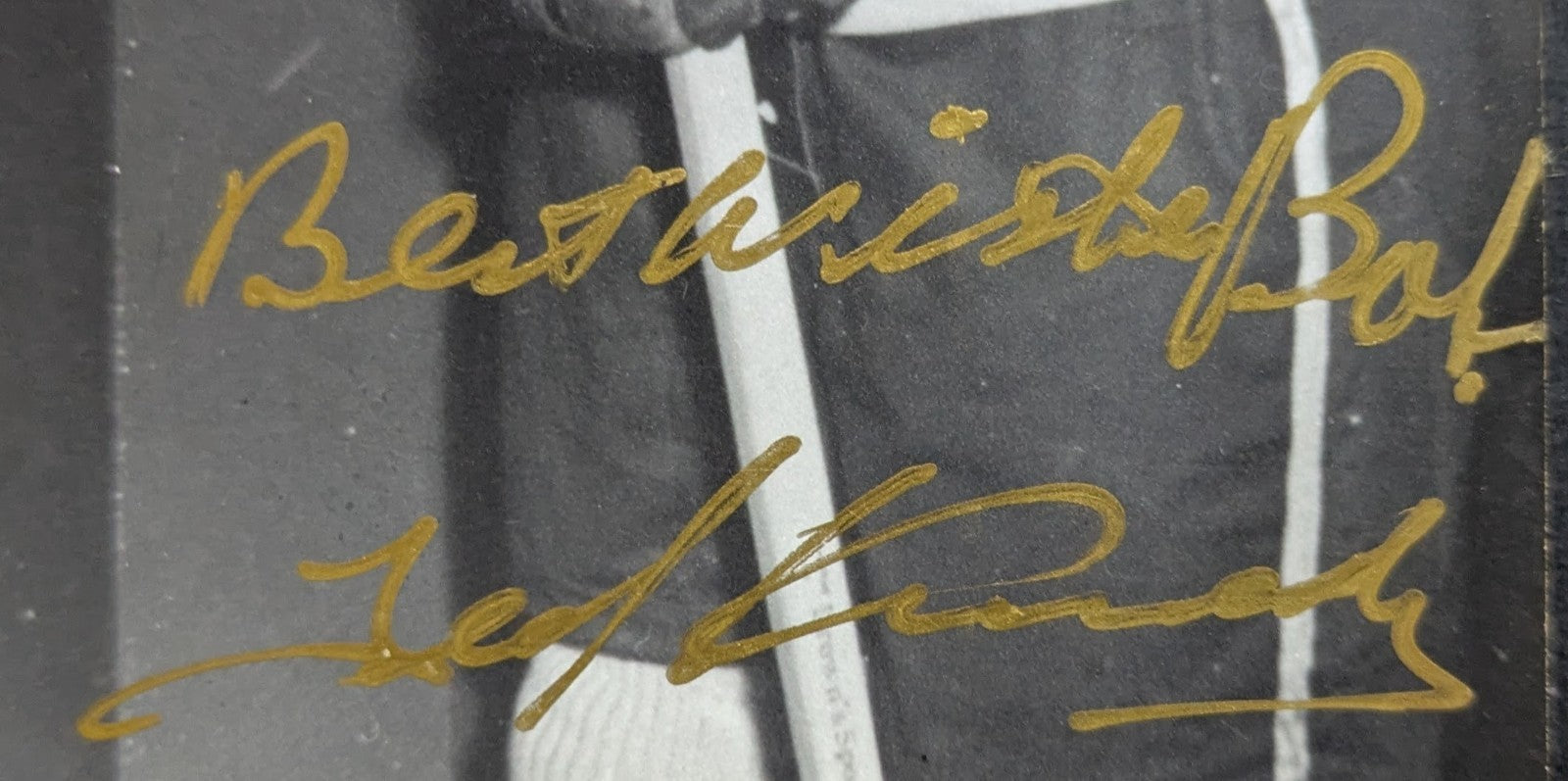 • Excellent condition; autograph presents well with no fading or smudging, some fading on back of photo, some slight corner and edge wear