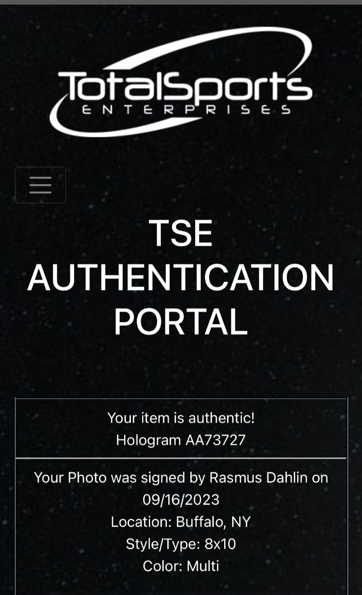 Buffalo Sabres Rasmus Dahlin Autographed Signed Photo TSE Holo NHL Hockey
