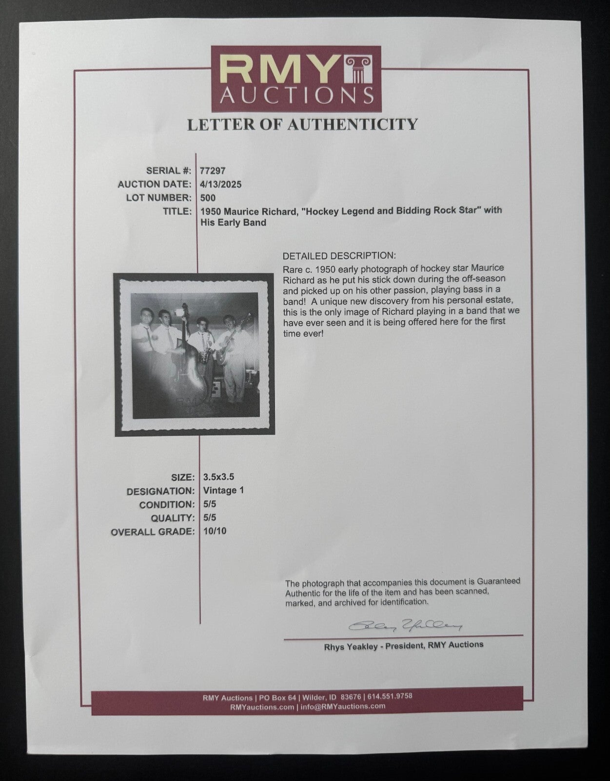 • Circa 1950 Maurice Richard Type 1 Photo LOA