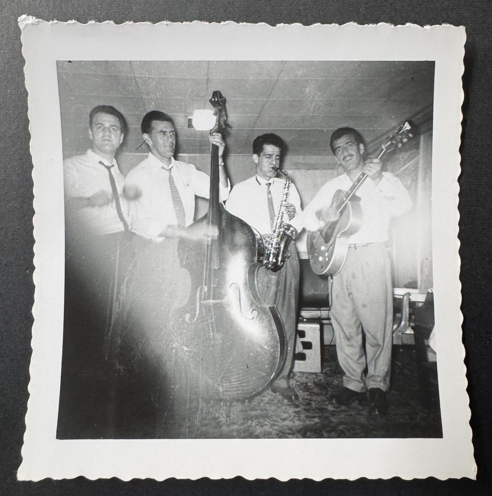 • One of a kind photo of Richard playing bass in a band