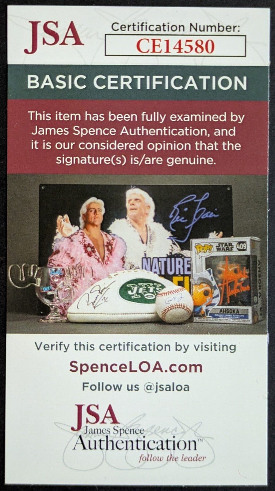 • Excellent condition; autograph presents well with no fading or smudging, small water mark spot on photo, heavy stock backing displays some corner and edge wear