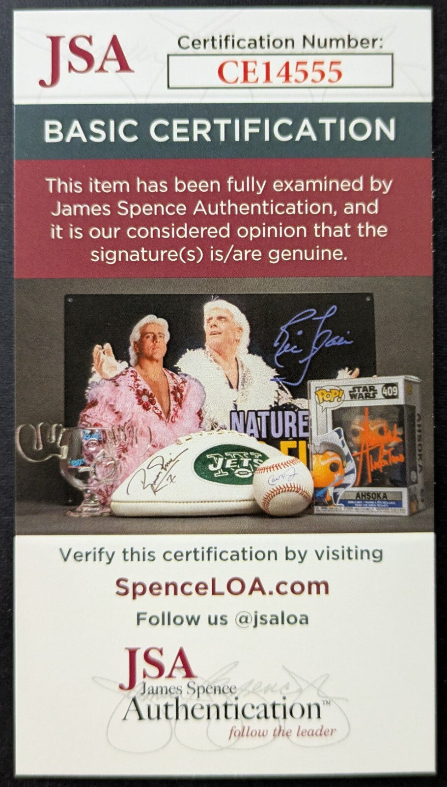 - Excellent condition; autograph presents well with no fading or smudging, some material loss on back of heavy stock backing due to tape removal, some corner wear throughout