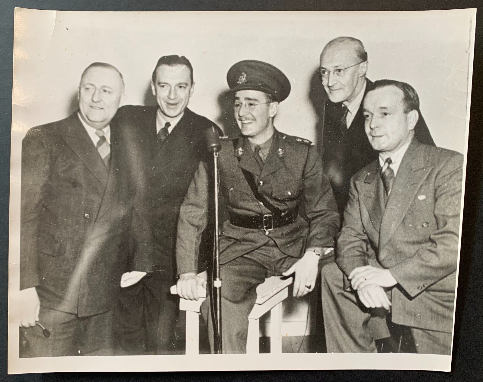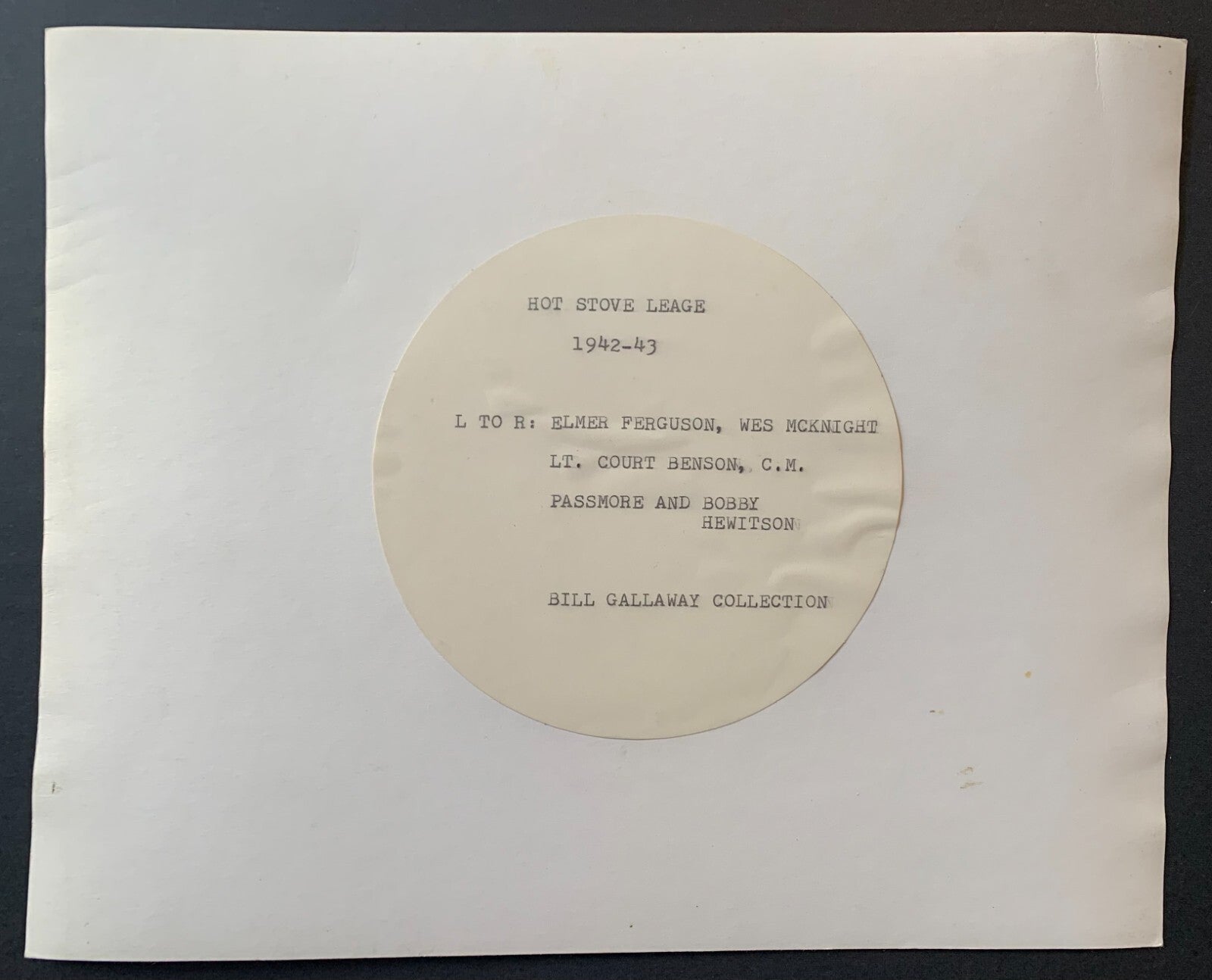 - Photo of participants include HOFer Elmer Ferguson, HOFer Wes McKnight, Canadian Army Lieutenant Court Benson, HOFer Bobby Hewitson and C.M. Passmore