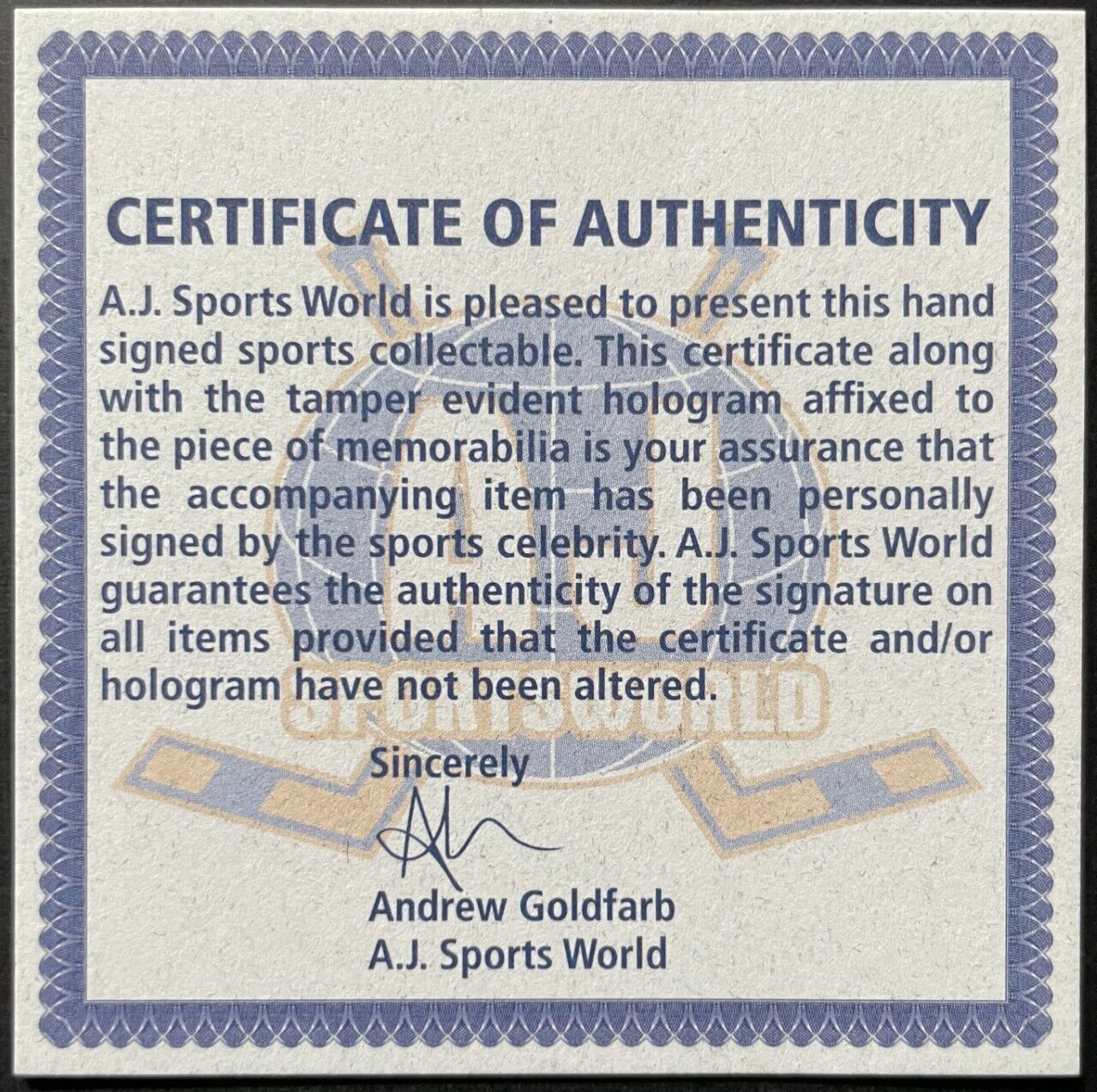 - Excellent condition; little to no visible handling wear, creasing, rips or tears. Autograph presents very well with no smudging or bleeding