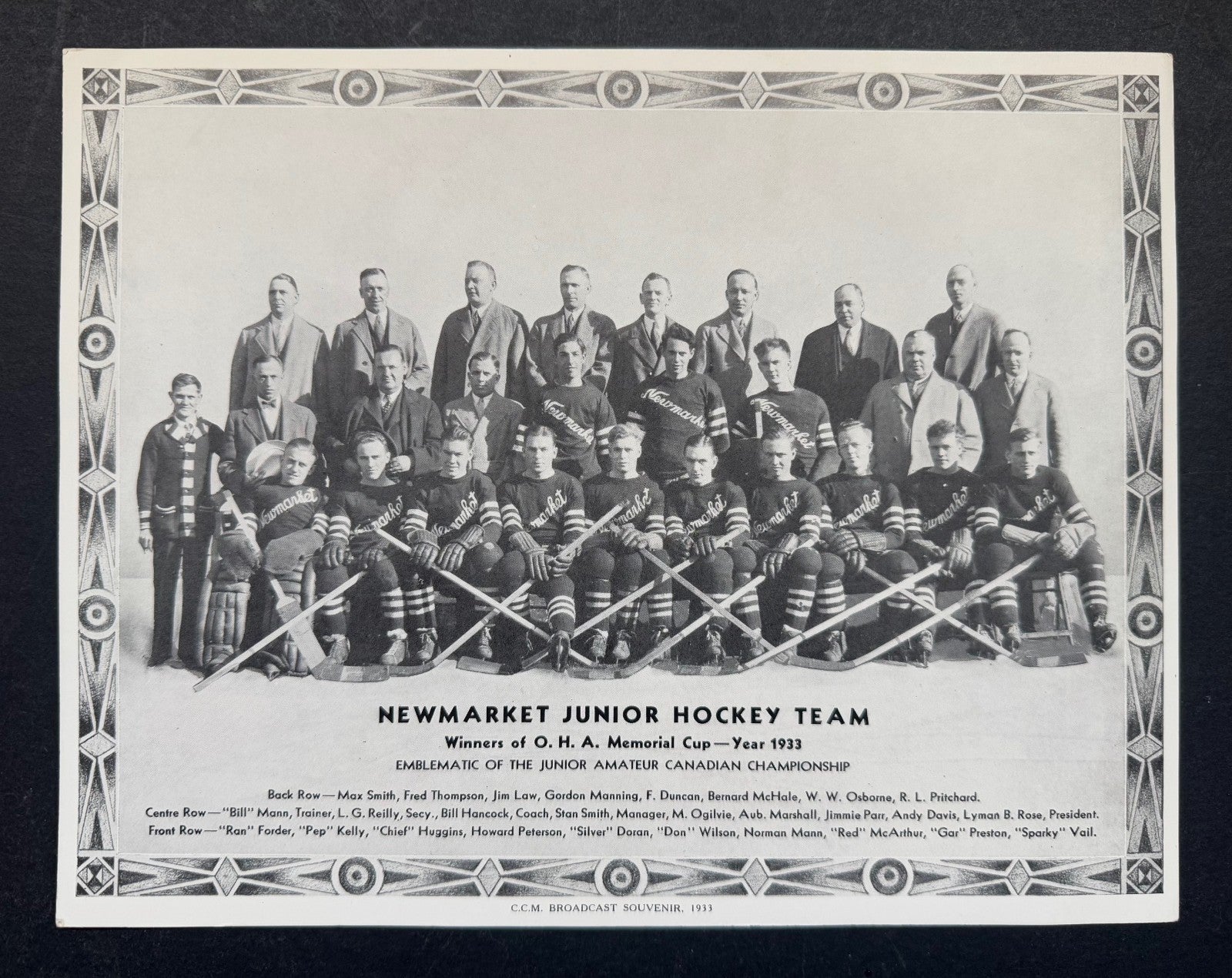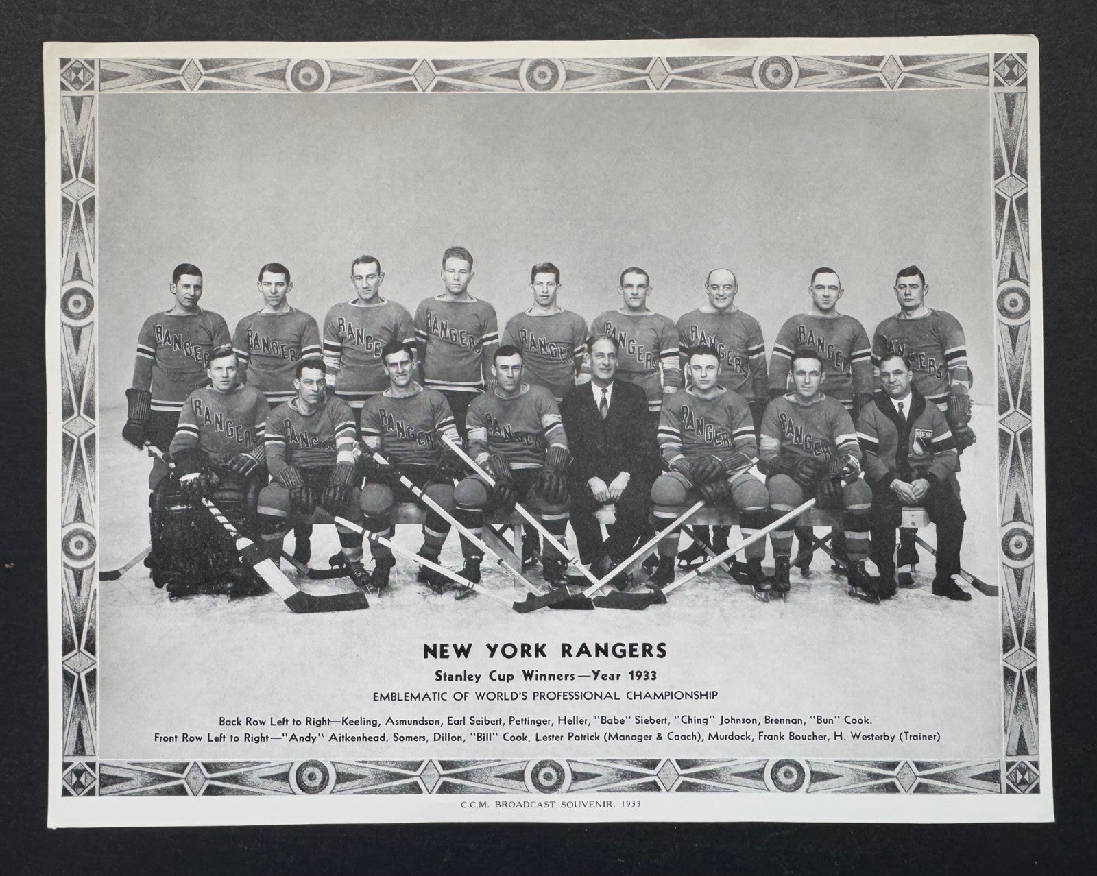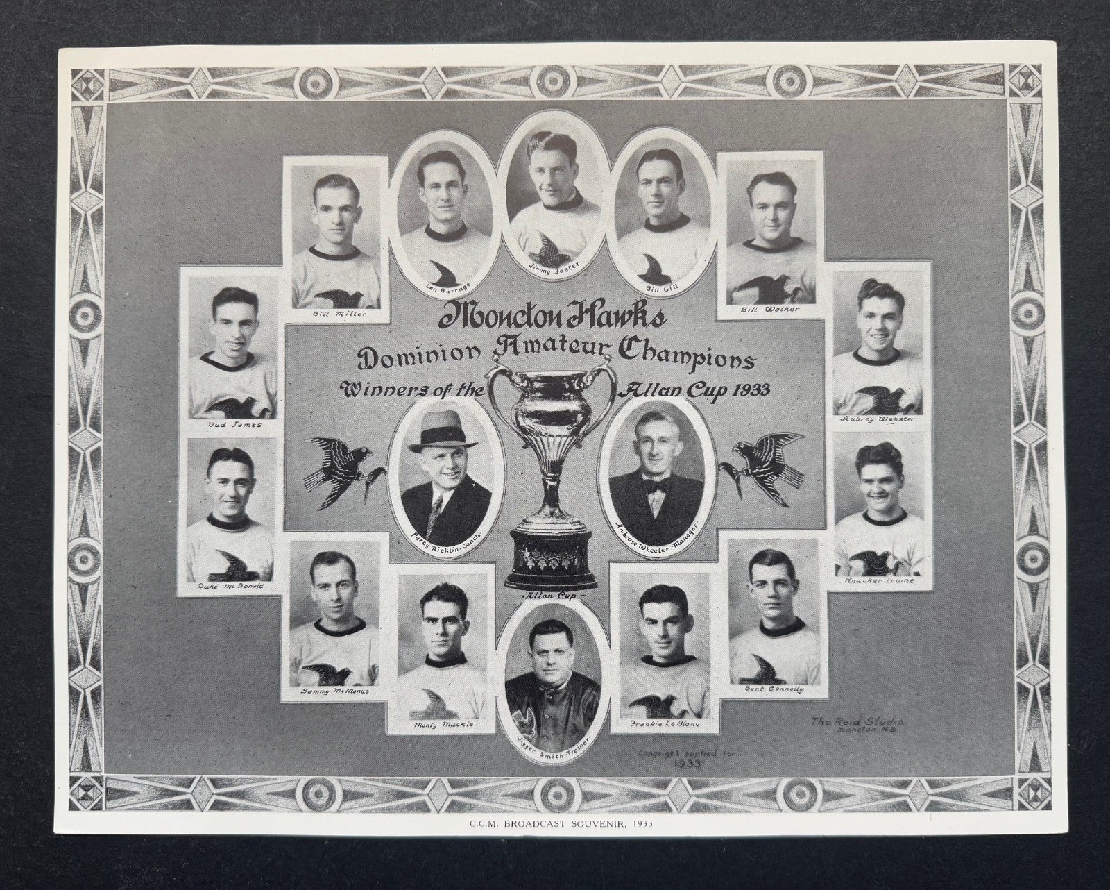 • First year photos issued by CCM. Full set of 5 photos. Photos include 1933 New York Rangers Stanley Cup Champions, Toronto Maple Leafs 1933 NHL Champions, Foster Hewitt, Newmarket Memorial Cup champions and Moncton Hawks Allan Cup Champions
