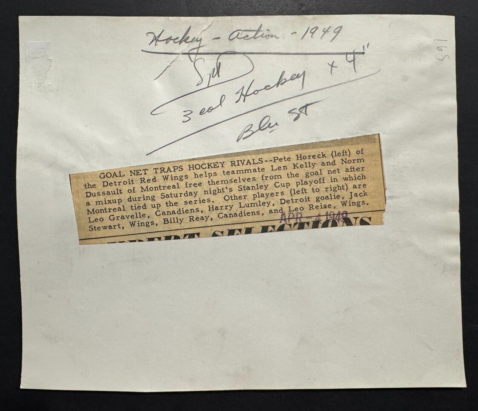 • Type 1 press photo of a 1949 Stanley Cup Semi-Finals matchup between the Detroit Red Wings and the Montreal Canadians played at Detroit Olympia