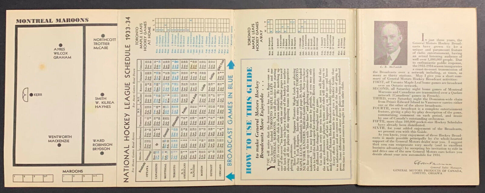 - 1933-1934 General Motors National Hockey League Broadcast guide (Montreal Maroons / Toronto Maple Leafs version)