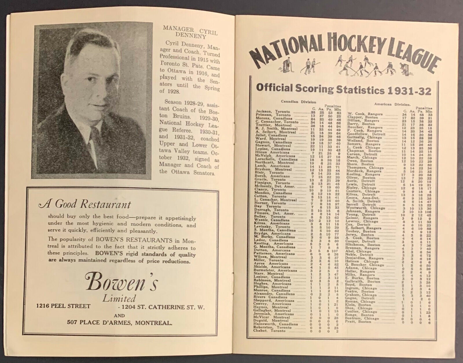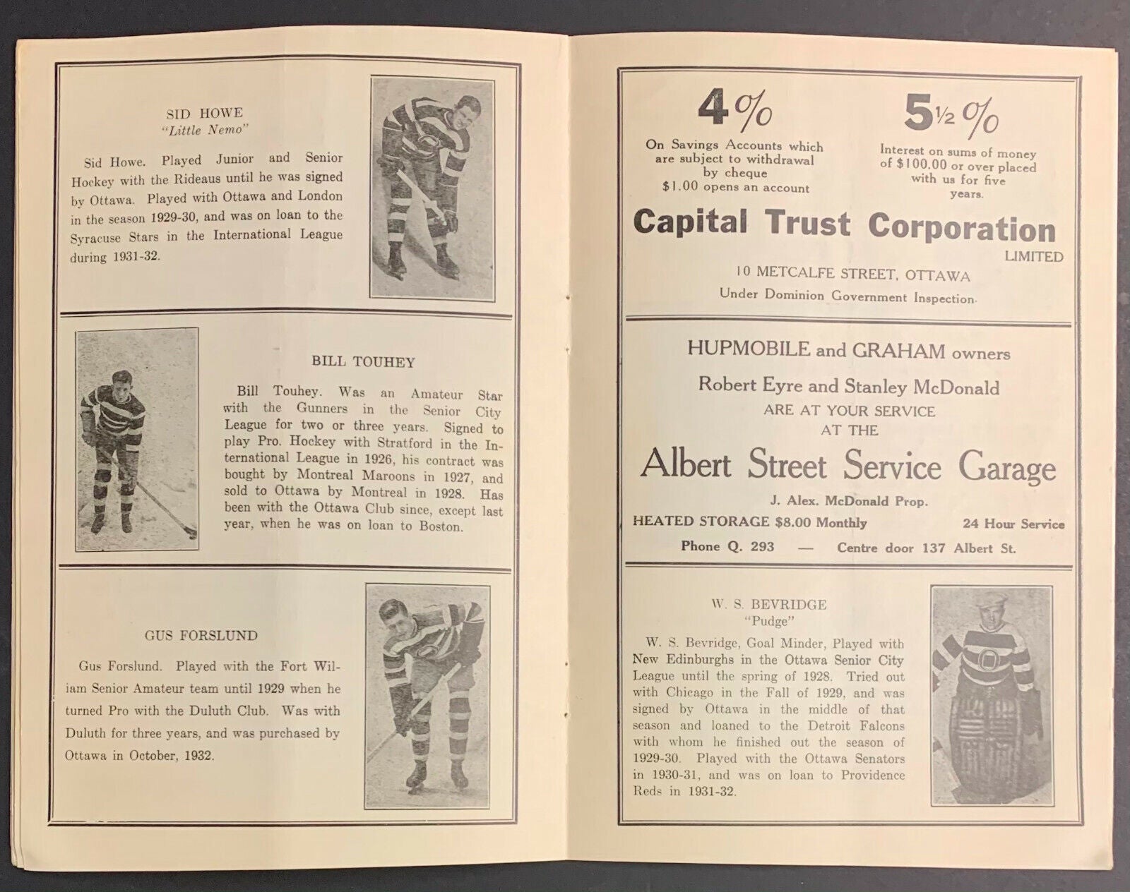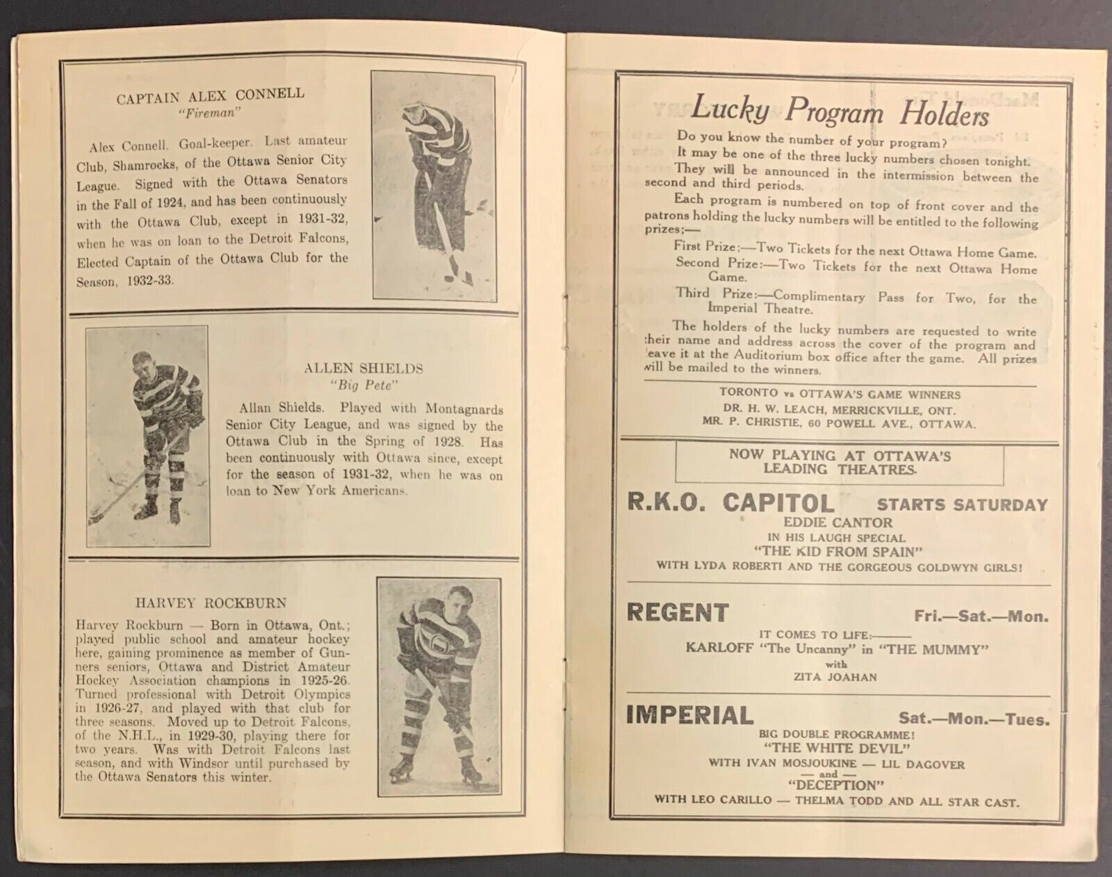 • March 3, 1933 Ottawa Auditorium NHL hockey program