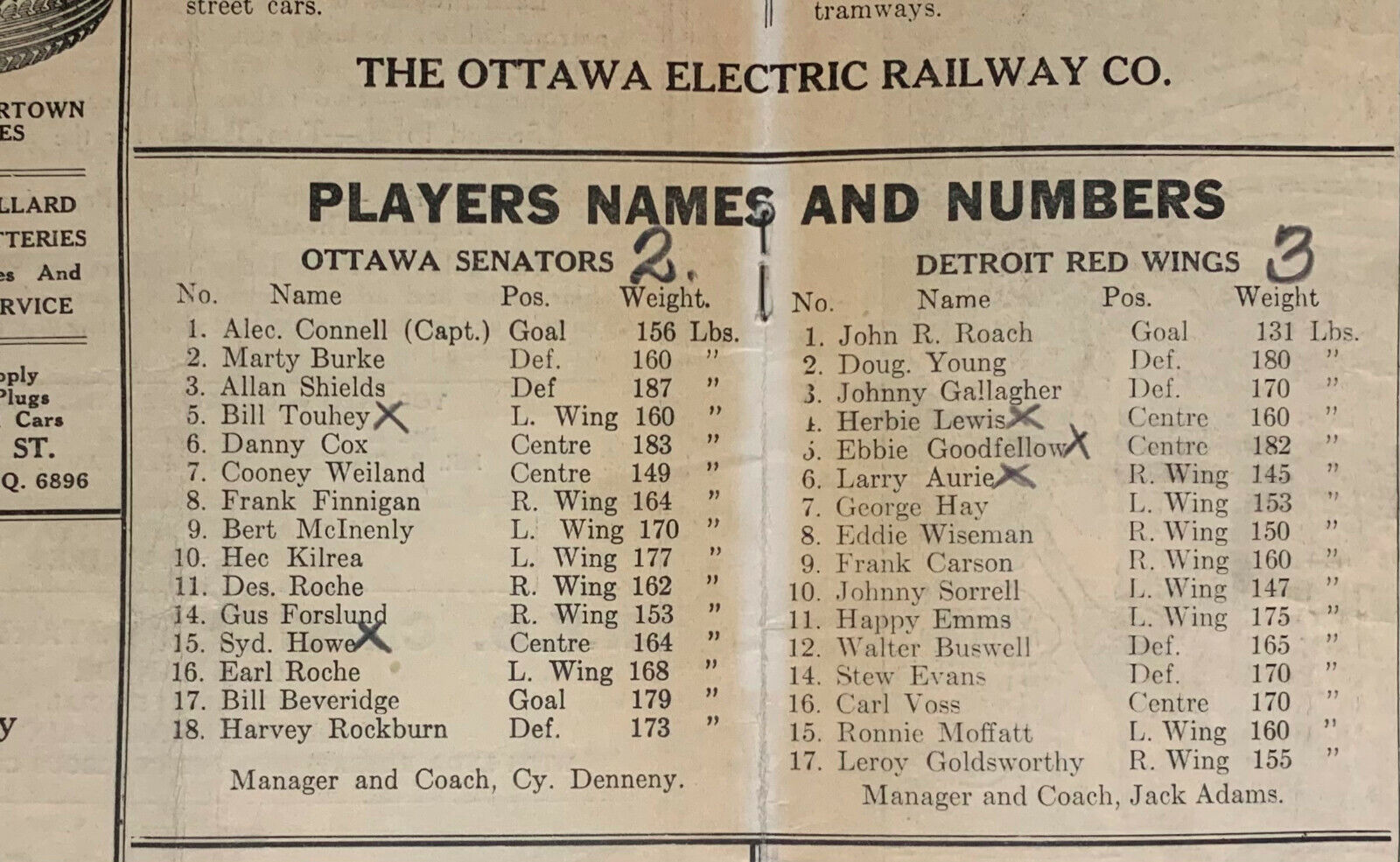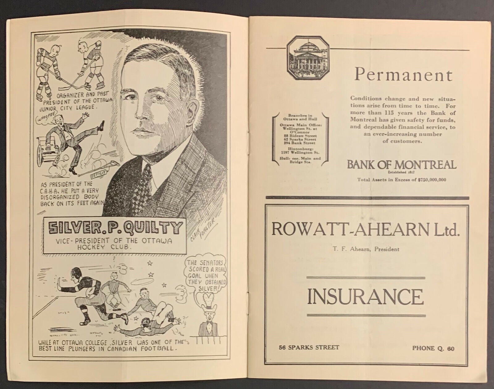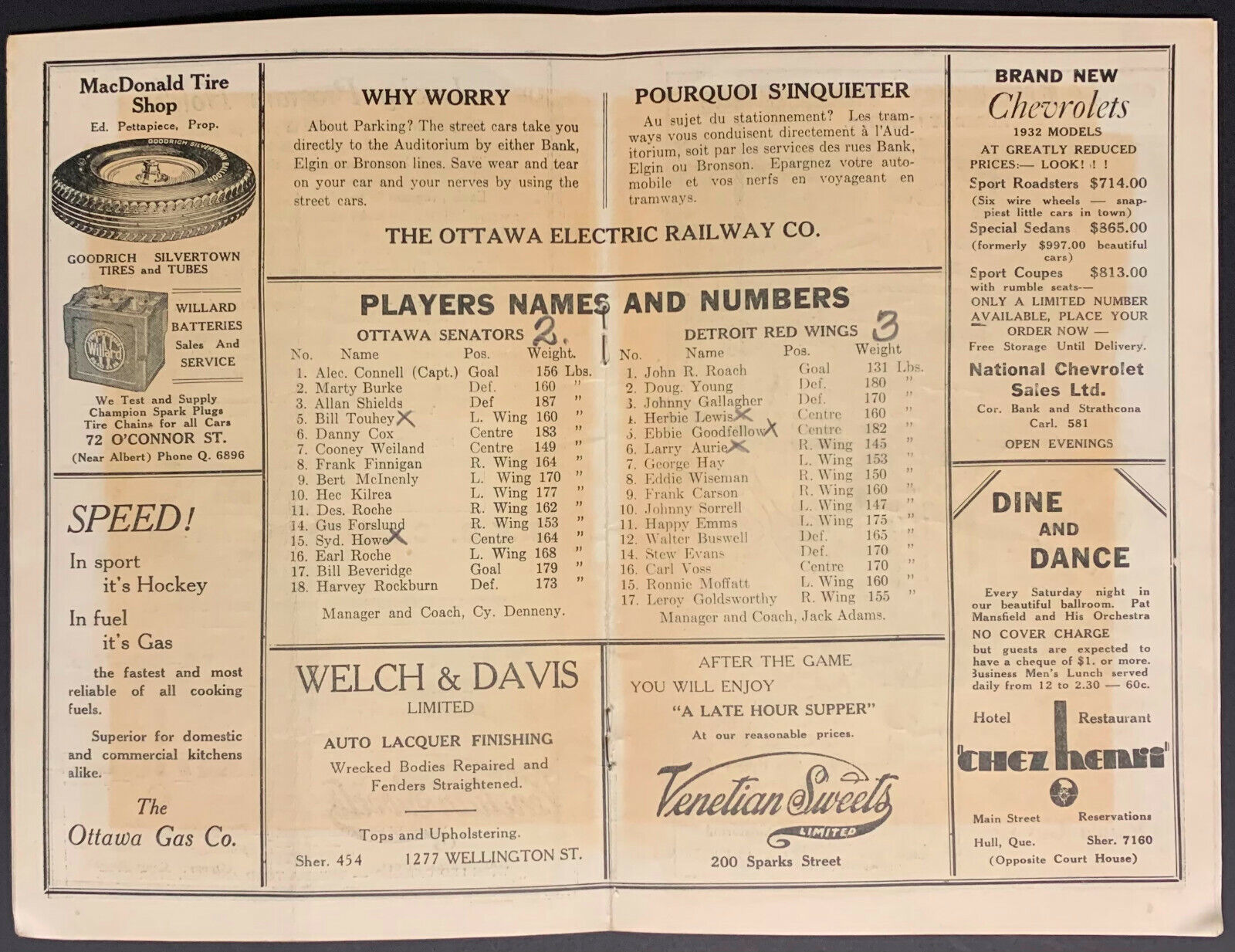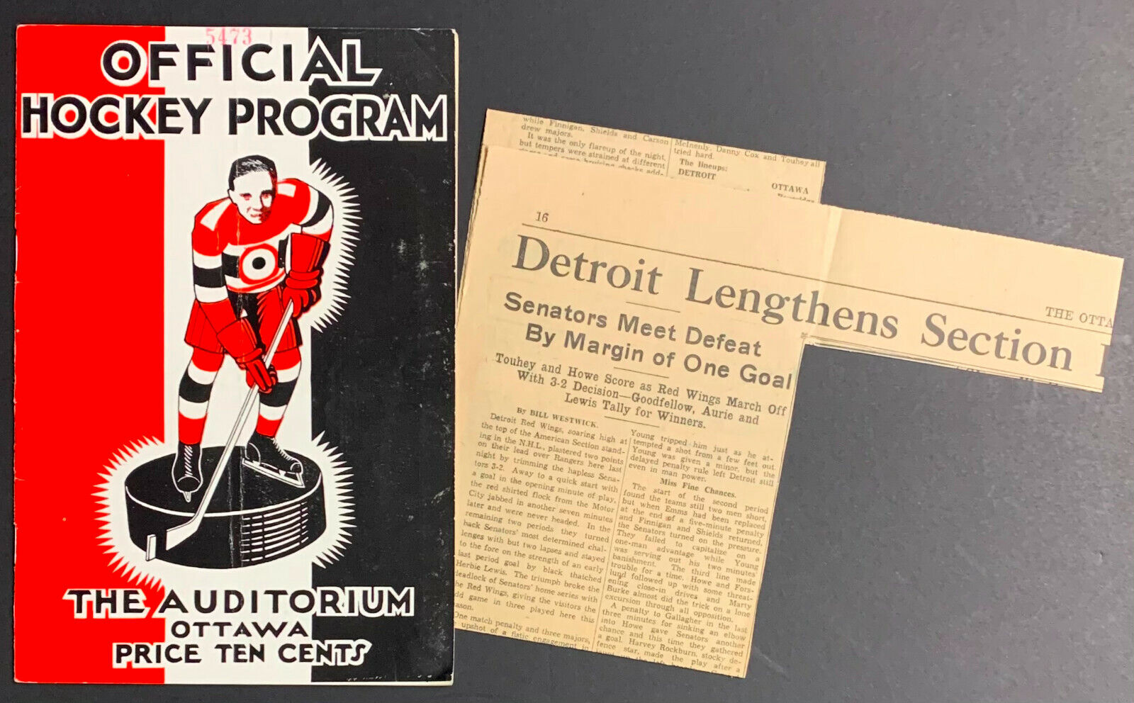 1933 Auditorium NHL Hockey Program Ottawa Senators vs Detroit Red Wings + News