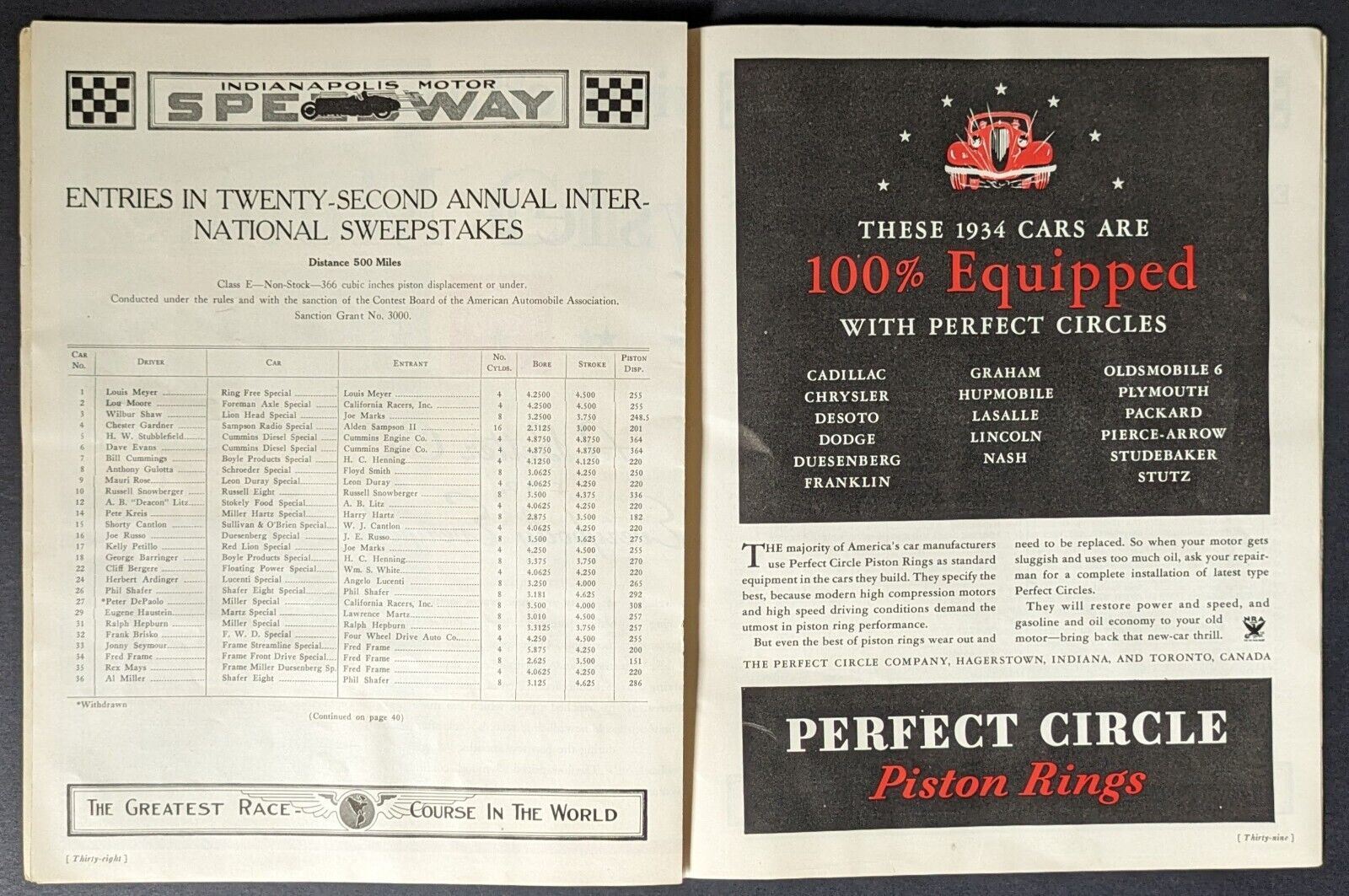 - 1934 Indianapolis Motor Speedway 22nd Indy 500 Auto Racing Program