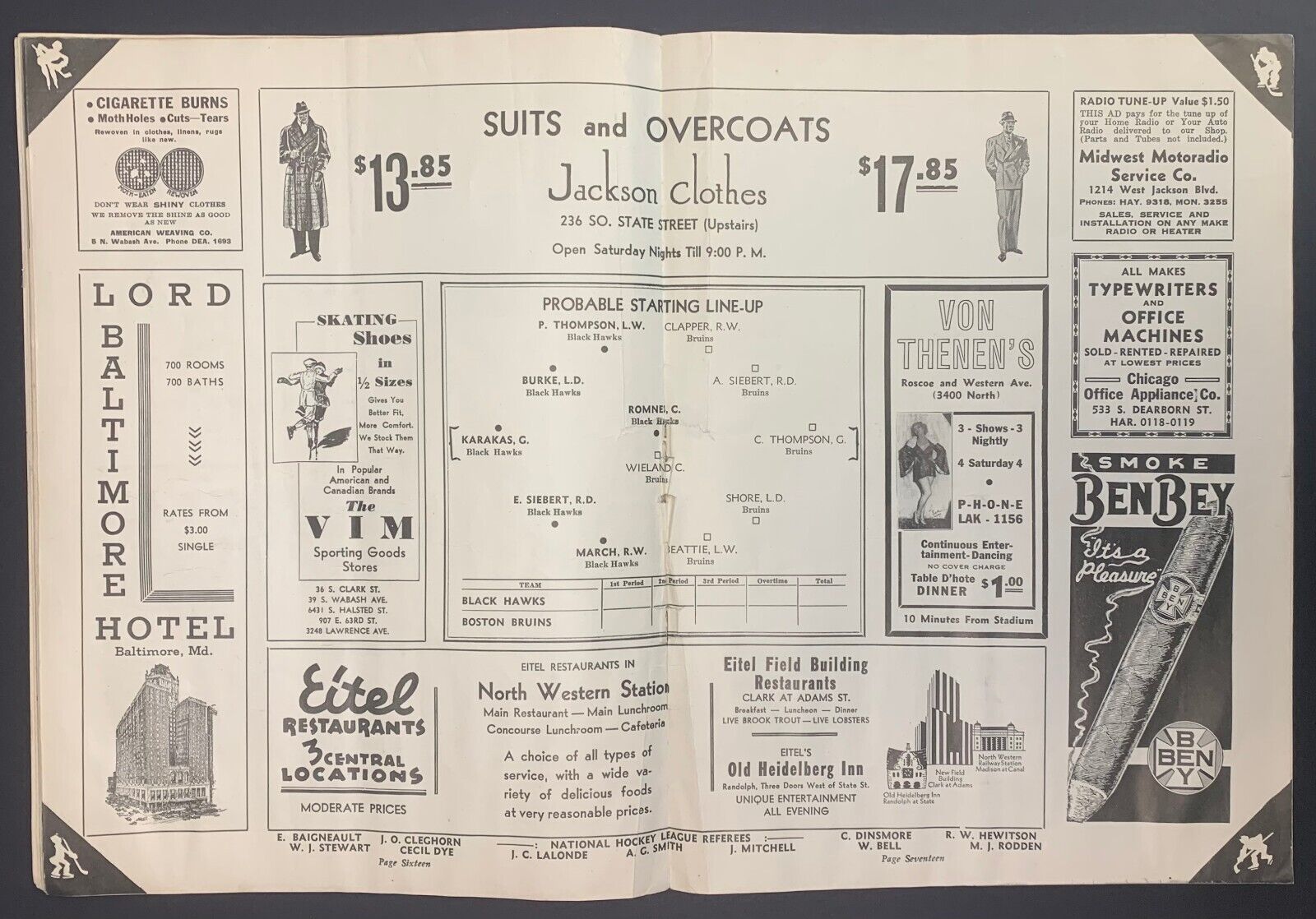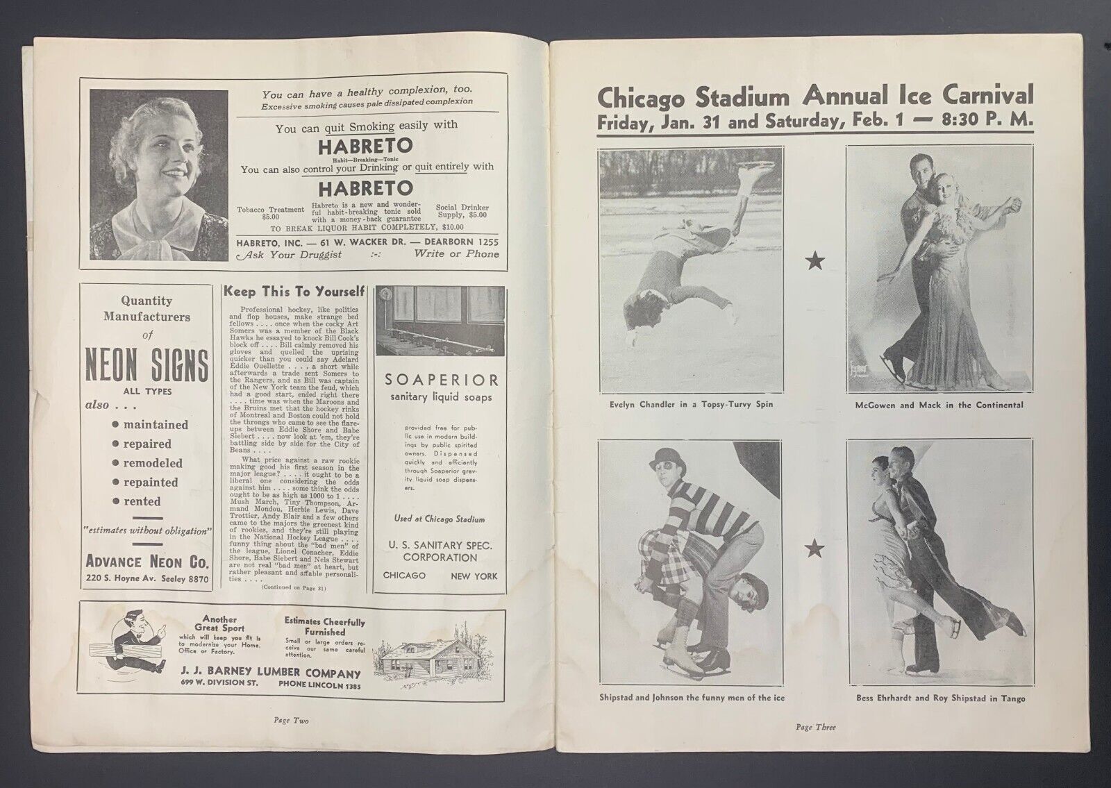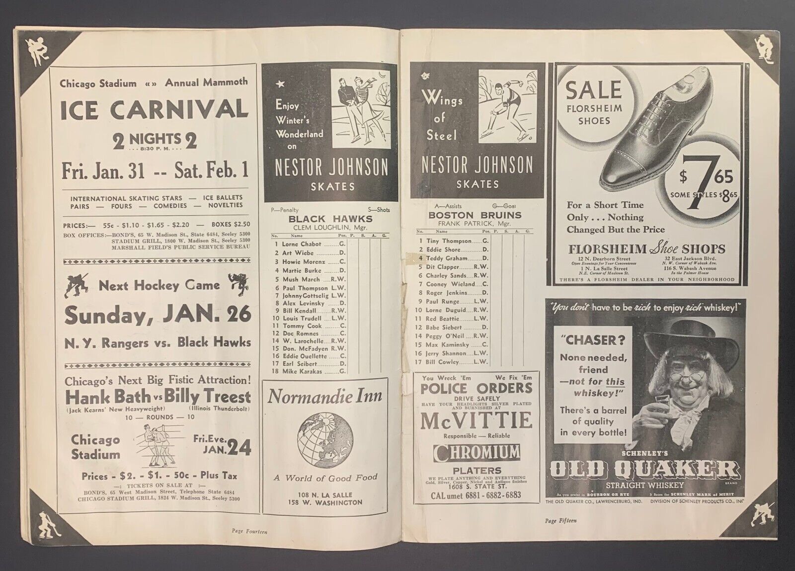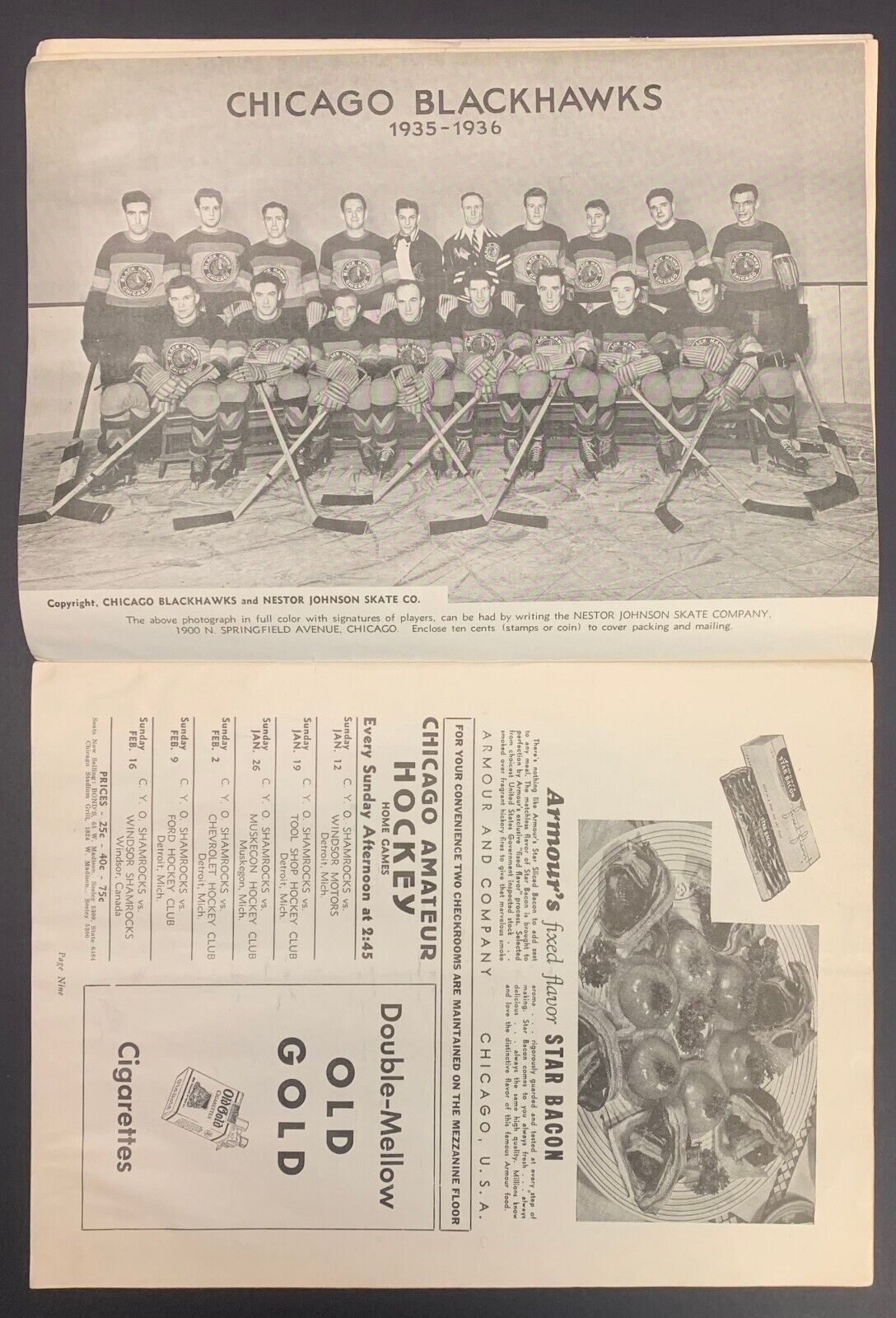 - January 19th, 1936 Chicago Stadium NHL hockey program