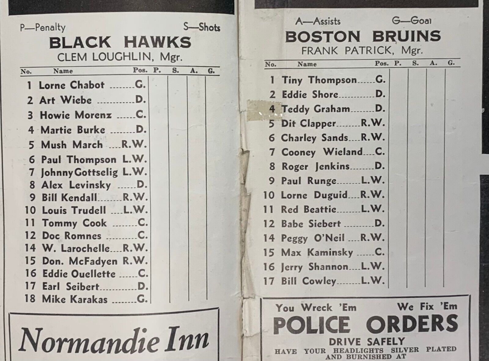 - Historic game as it is the last game the legendary Howie Morenz would play for the Chicago Blackhawks. Morenz was benched the following game and a few days later was traded to the New York Rangers