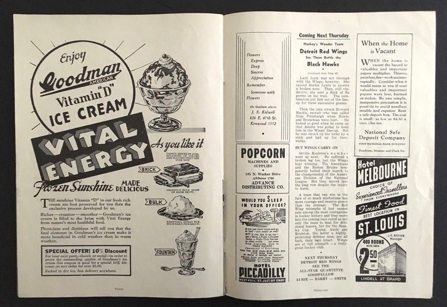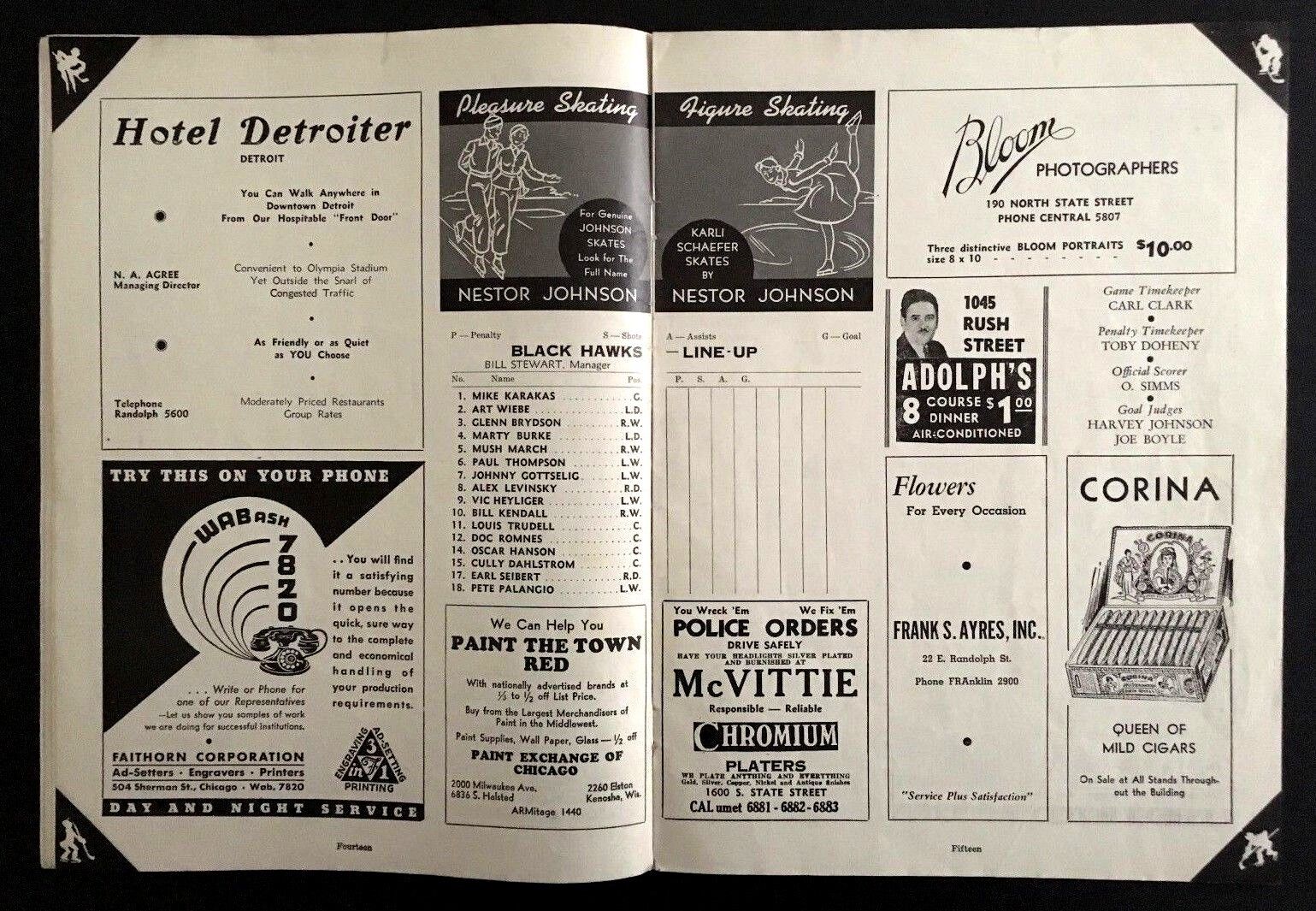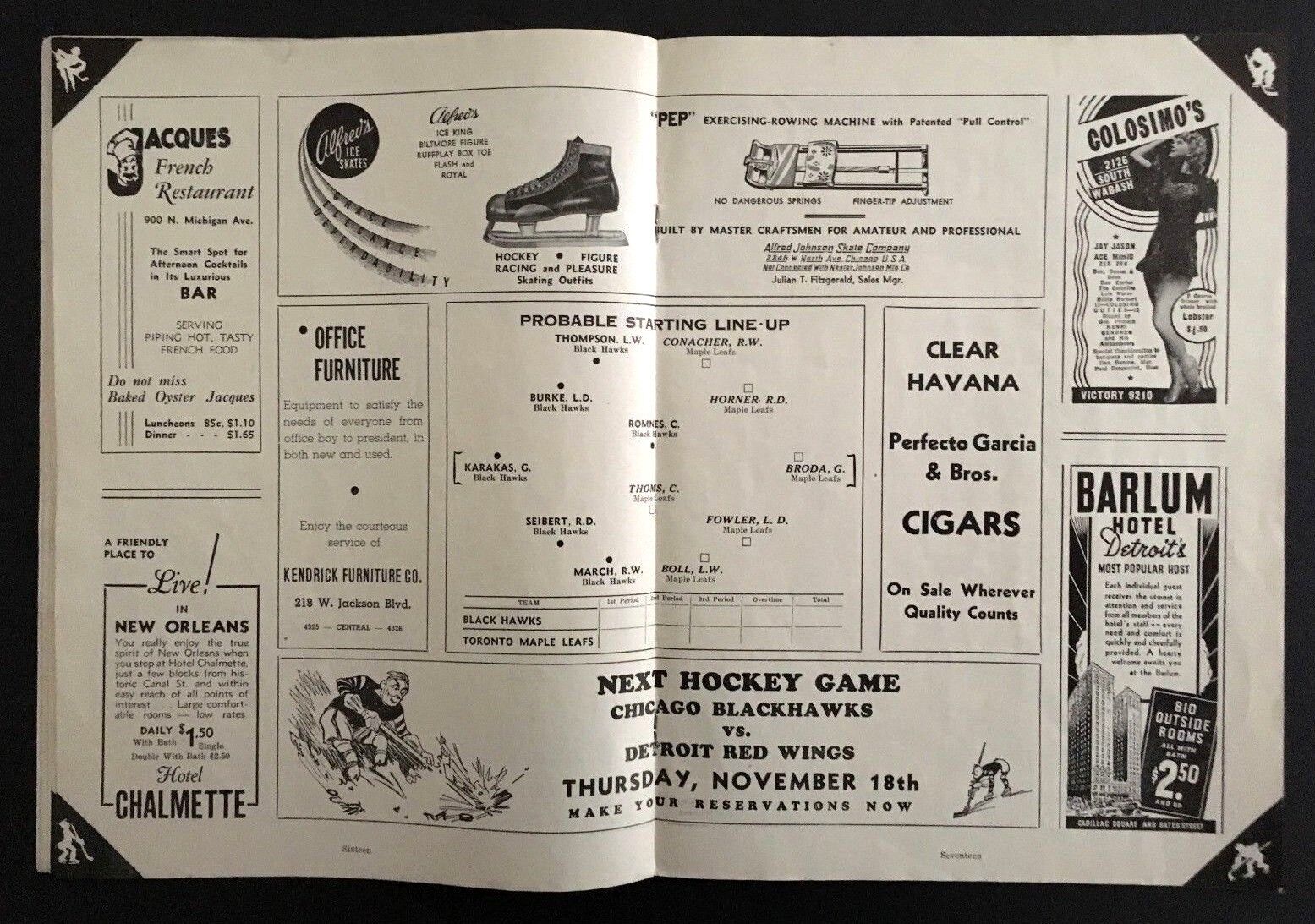 - November 14th, 1937 at Chicago Stadium program for the Chicago Black Hawks and the Toronto Maple Leafs