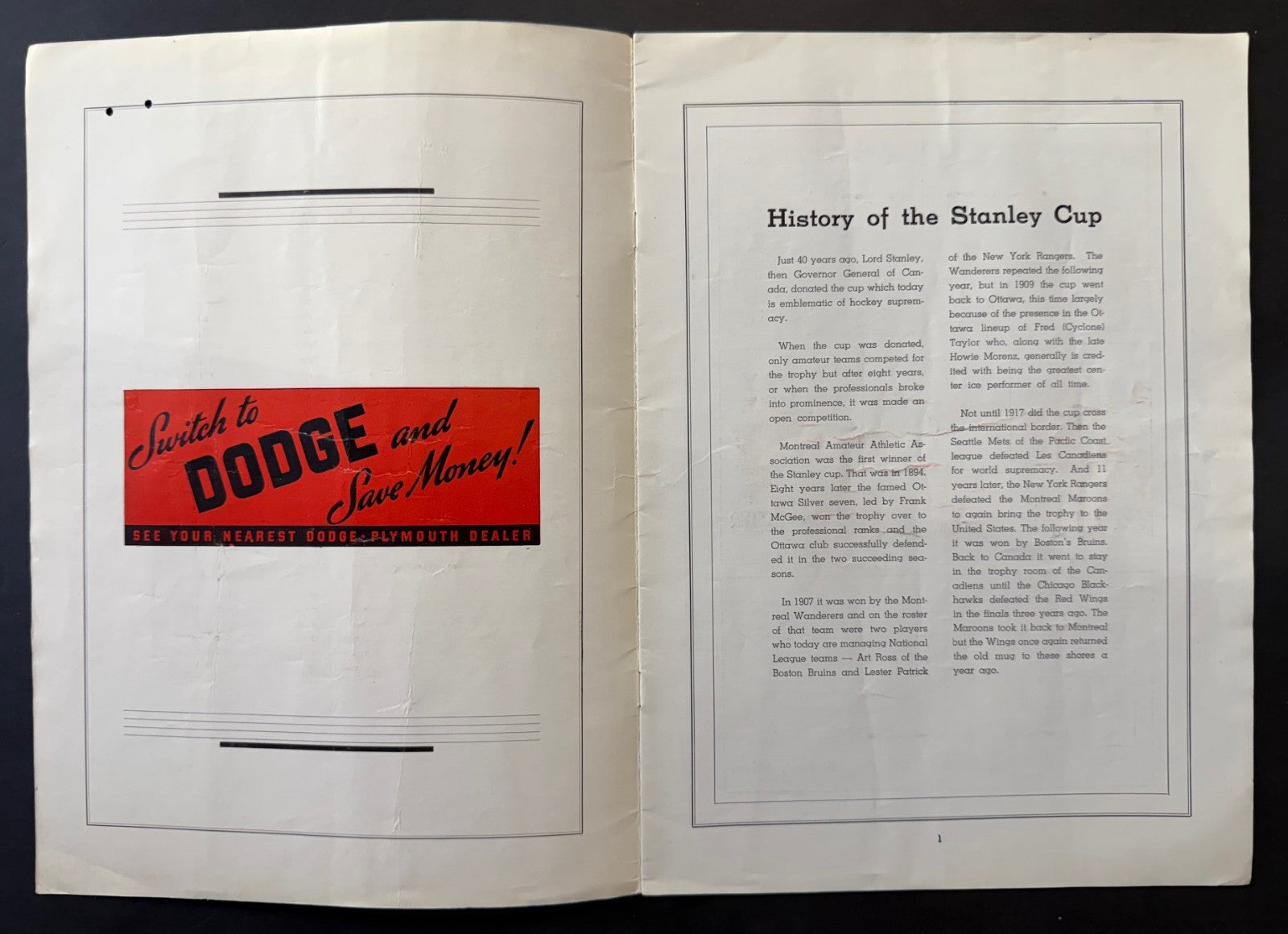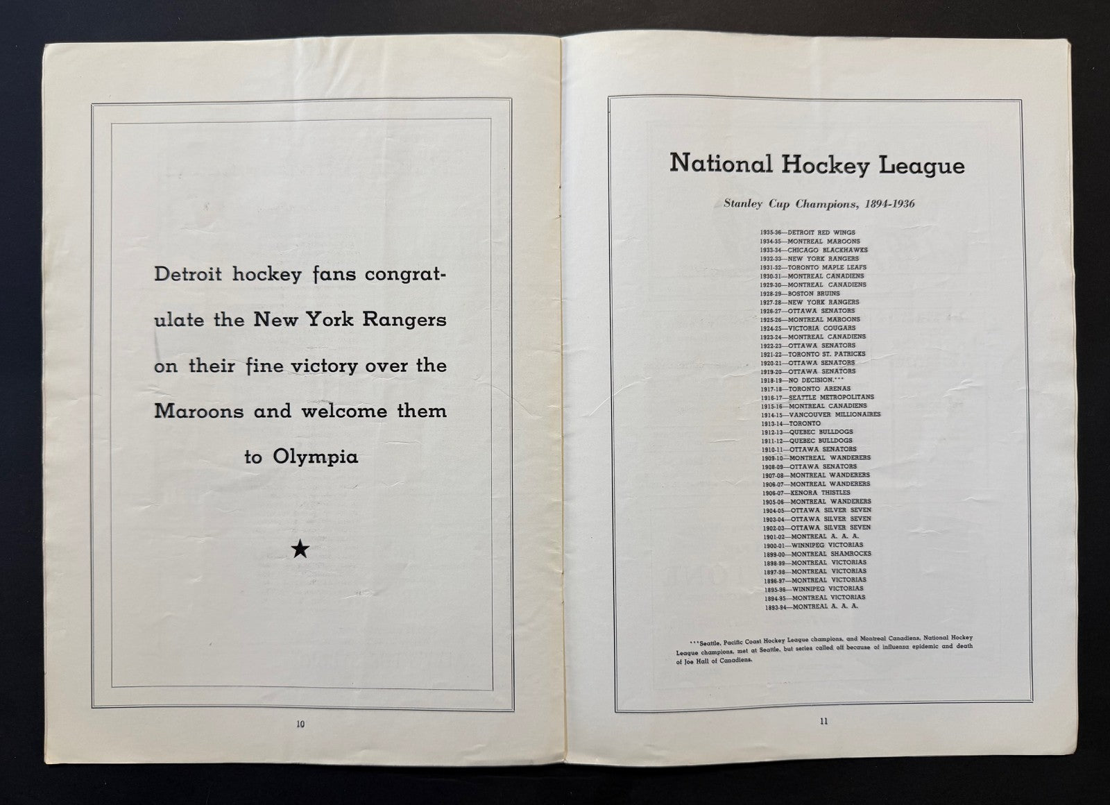 - 1937 Stanley Cup Finals program at Detroit's Olympia Stadium