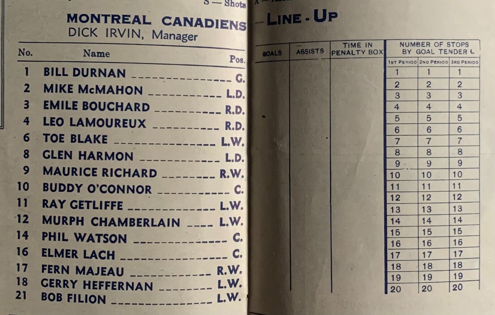 - January 1st, 1944 Montreal Canadiens vs Chicago Blackhawks Unscored Program