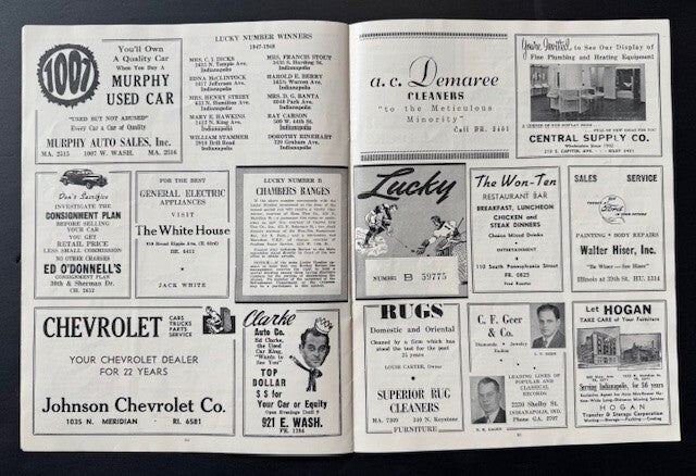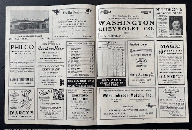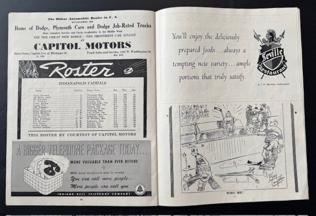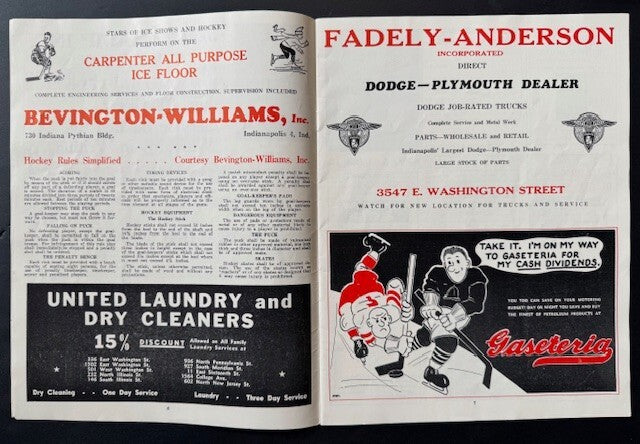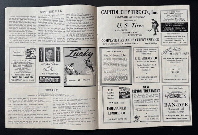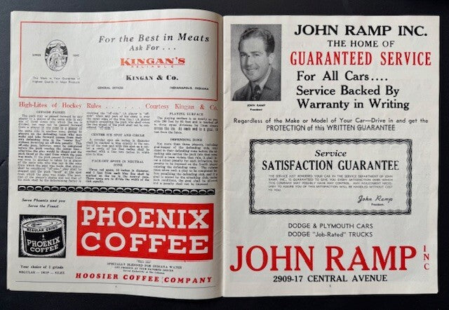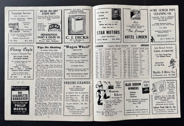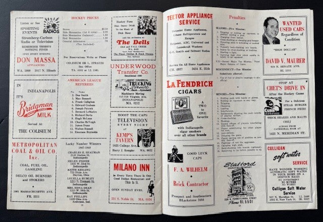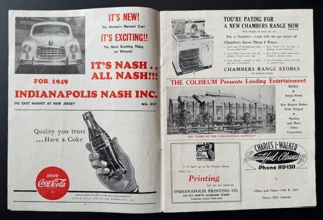 - Mar. 20, 1949 program for game at Indianapolis Coliseum between the Indianapolis Capitals and Pittsburgh Hornets
