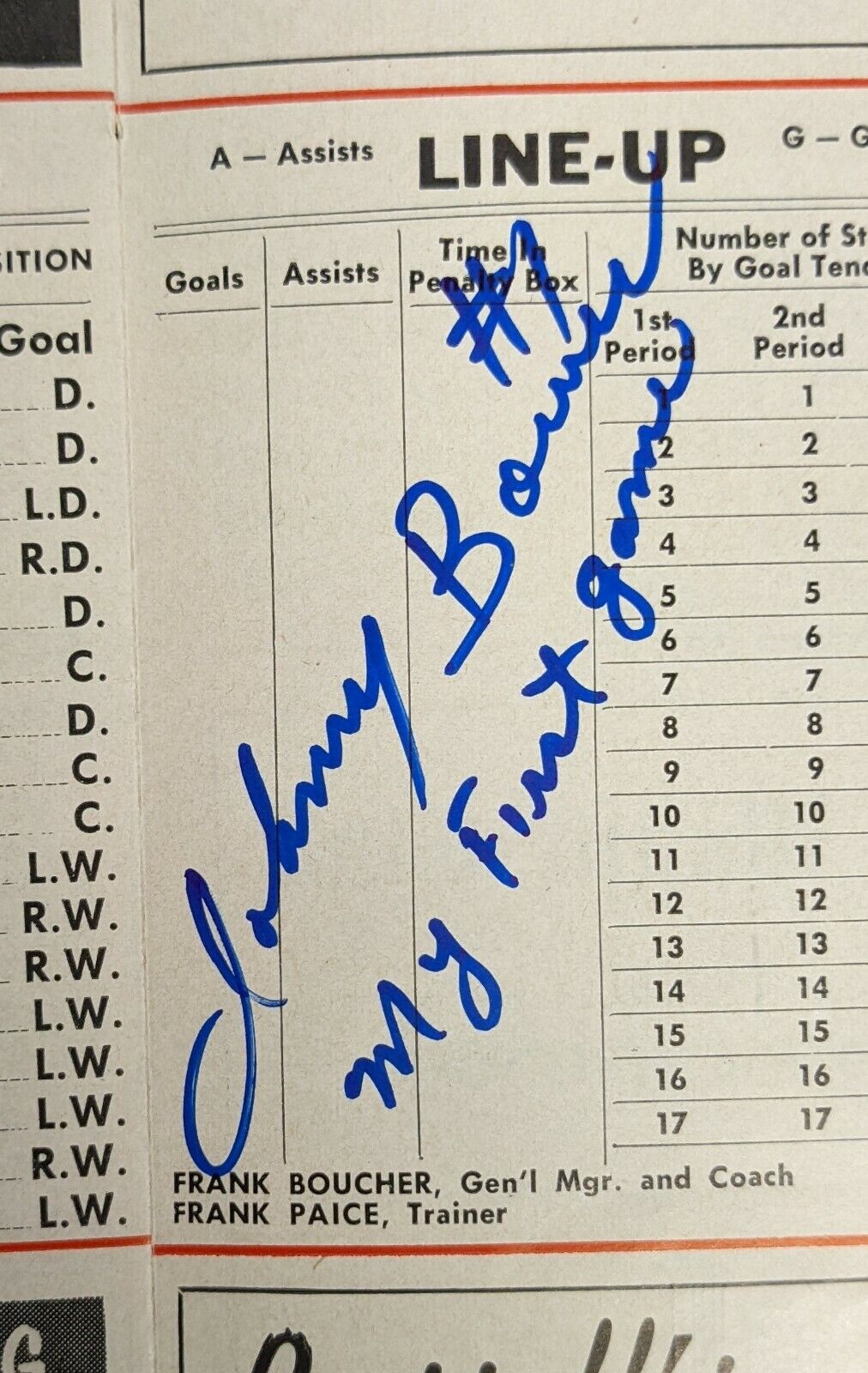 - This item is from Bower's first game in the NHL, a season opener matchup between the New York Rangers and the Detroit Red Wings. Detroit would win 4-1