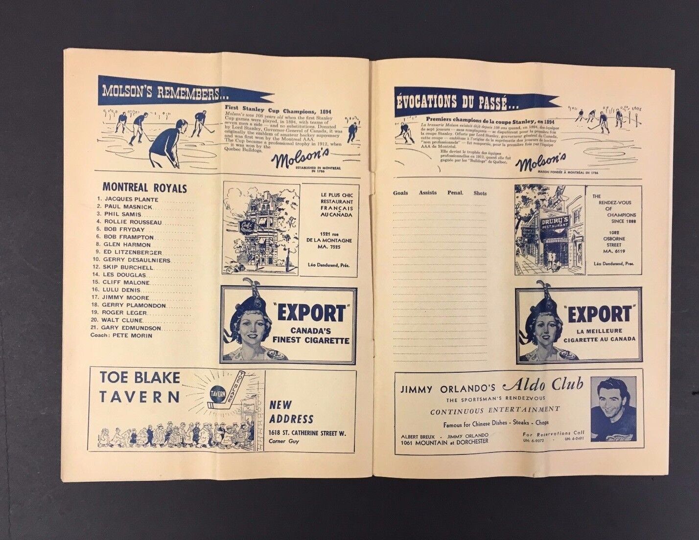 - 1953 program - Montreal Royals vs Quebec Aces Jacques Plante Jean Beliveau