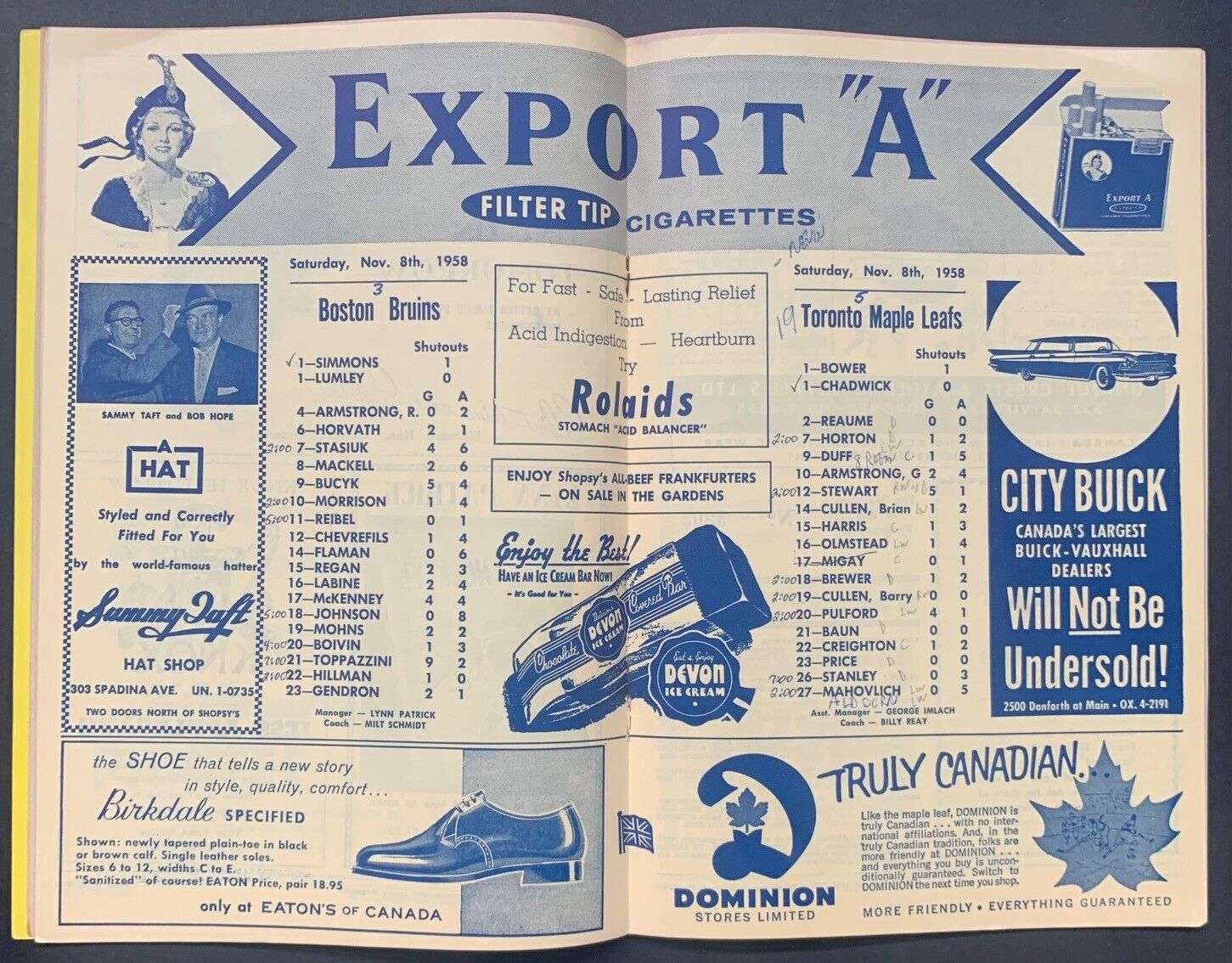 - November 8th, 1958 Maple Leaf Garden Complete and Scored Program
