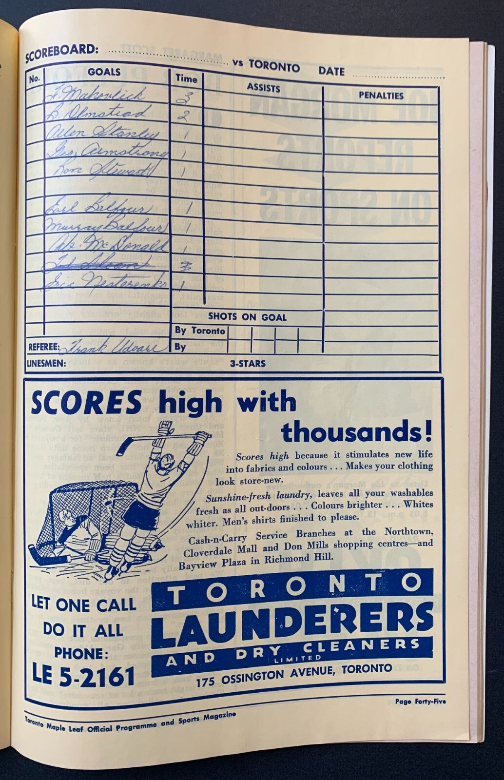 - Oct. 29, 1960 program for game between the Toronto Maple Leafs and Chicago Blackhawks