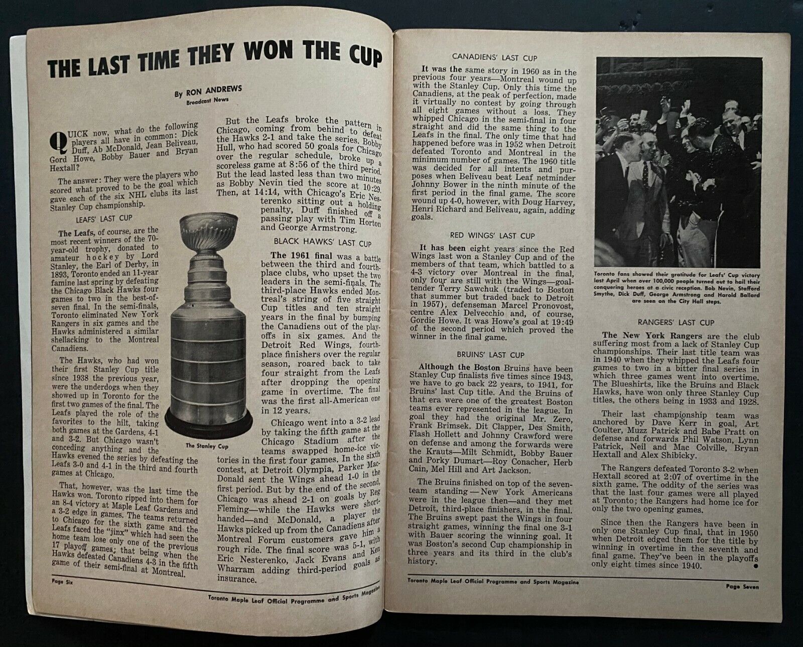 1962-63 NHL Hockey Toronto Maple Leafs Stanley Cup Clincher Game Program