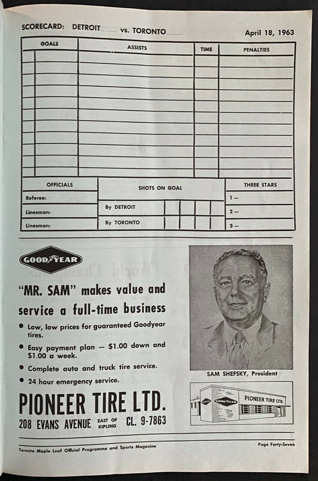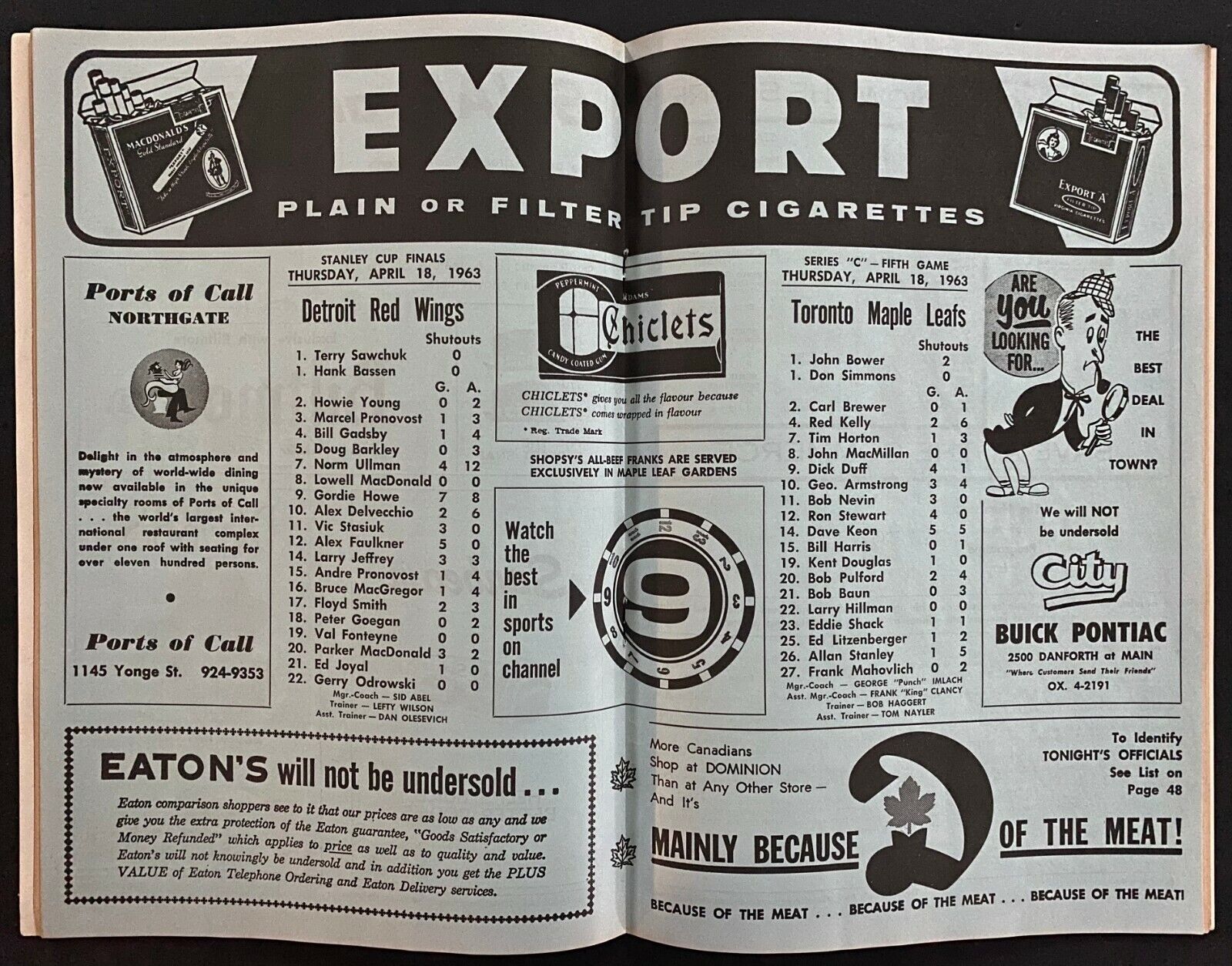 • April 18, 1963 program for NHL hockey game between the Toronto Maple Leafs and the Detroit Red Wings