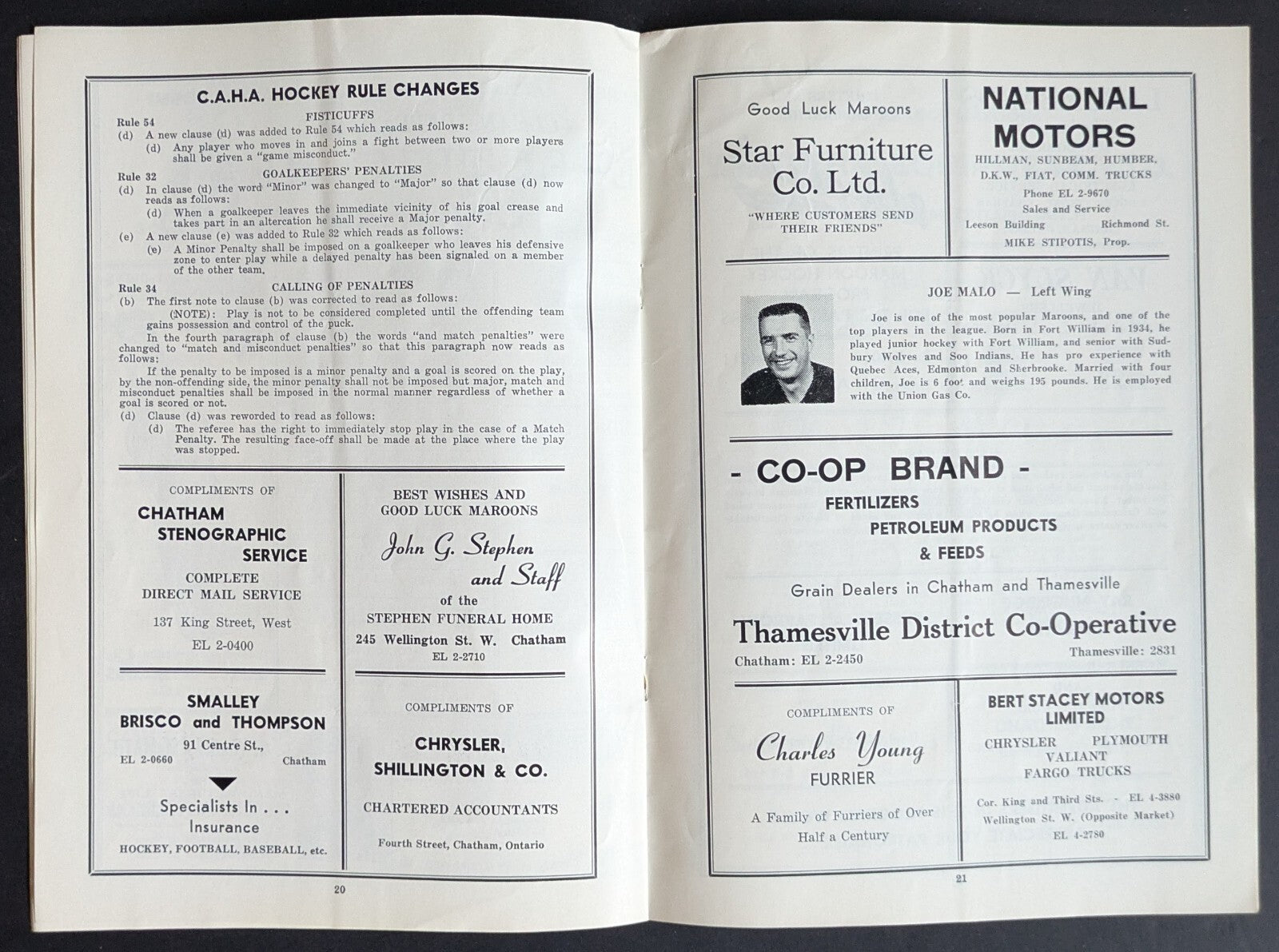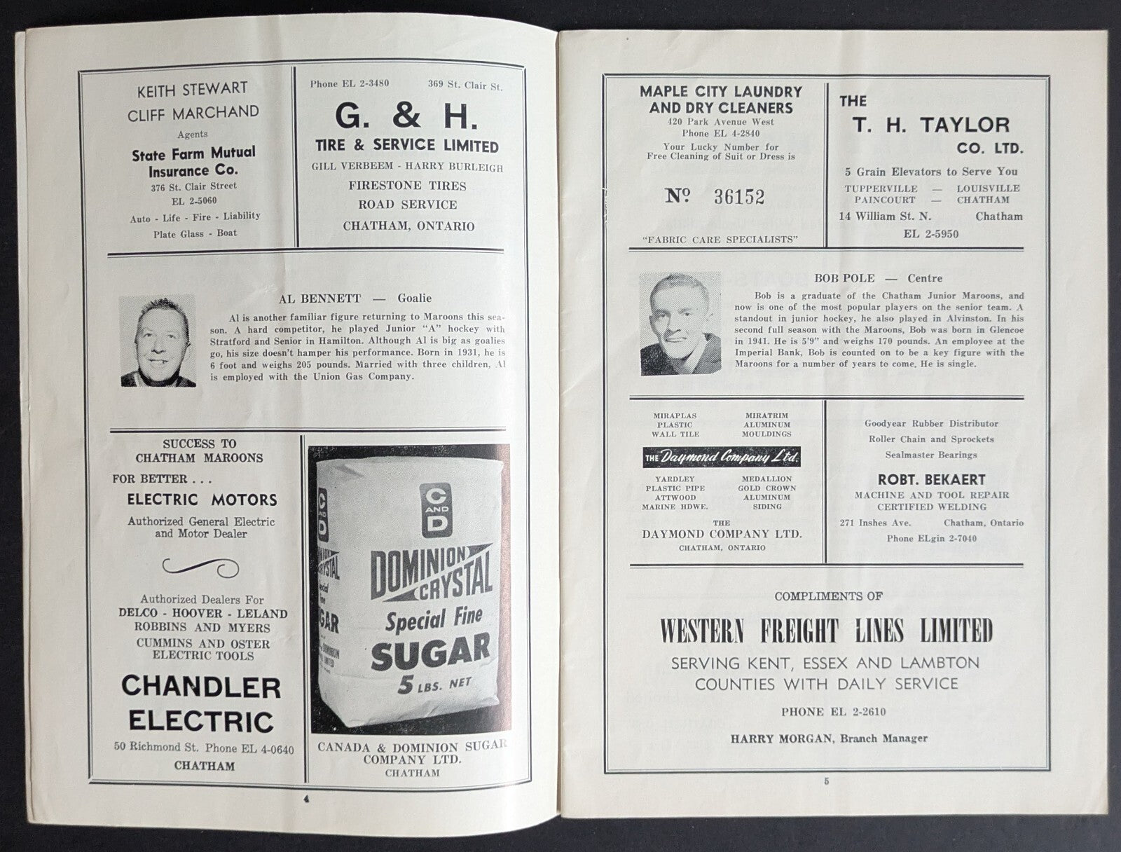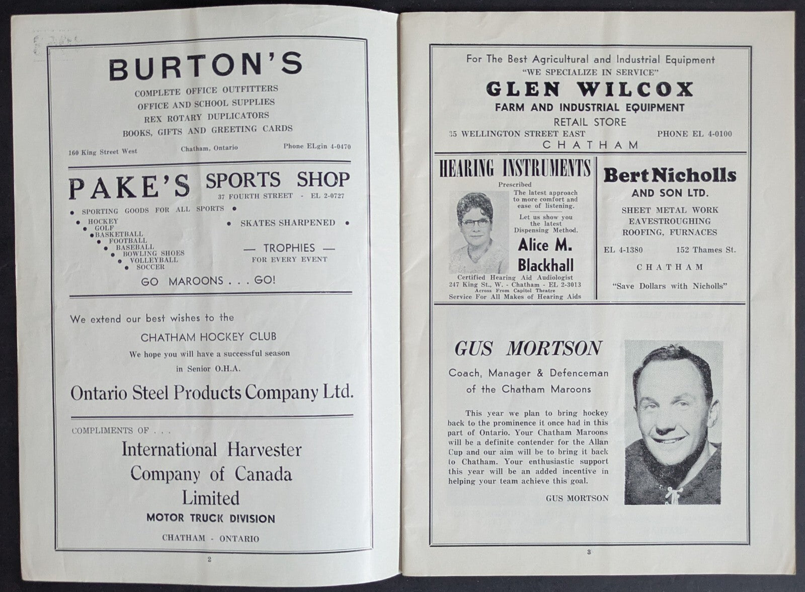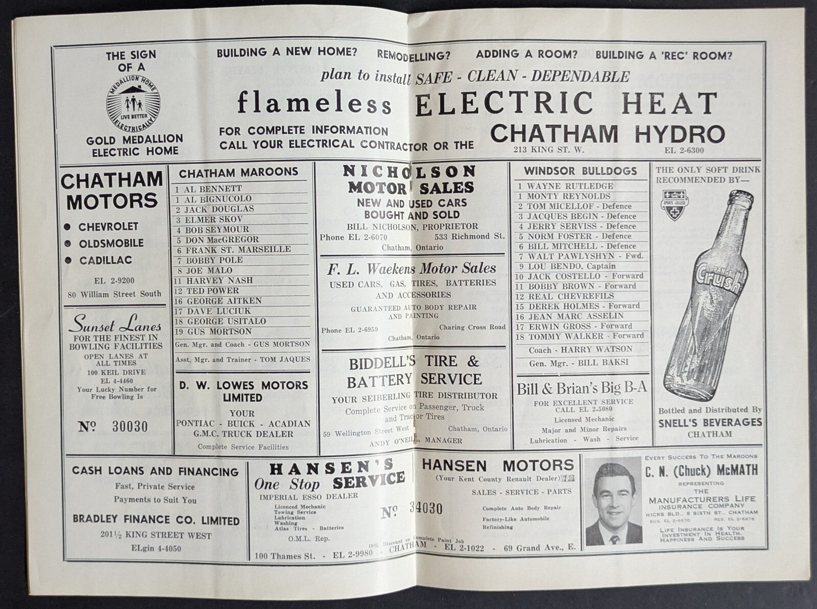1962 Chatham Maroons Program Hockey Senior A OHA Windsor Bulldogs NHL