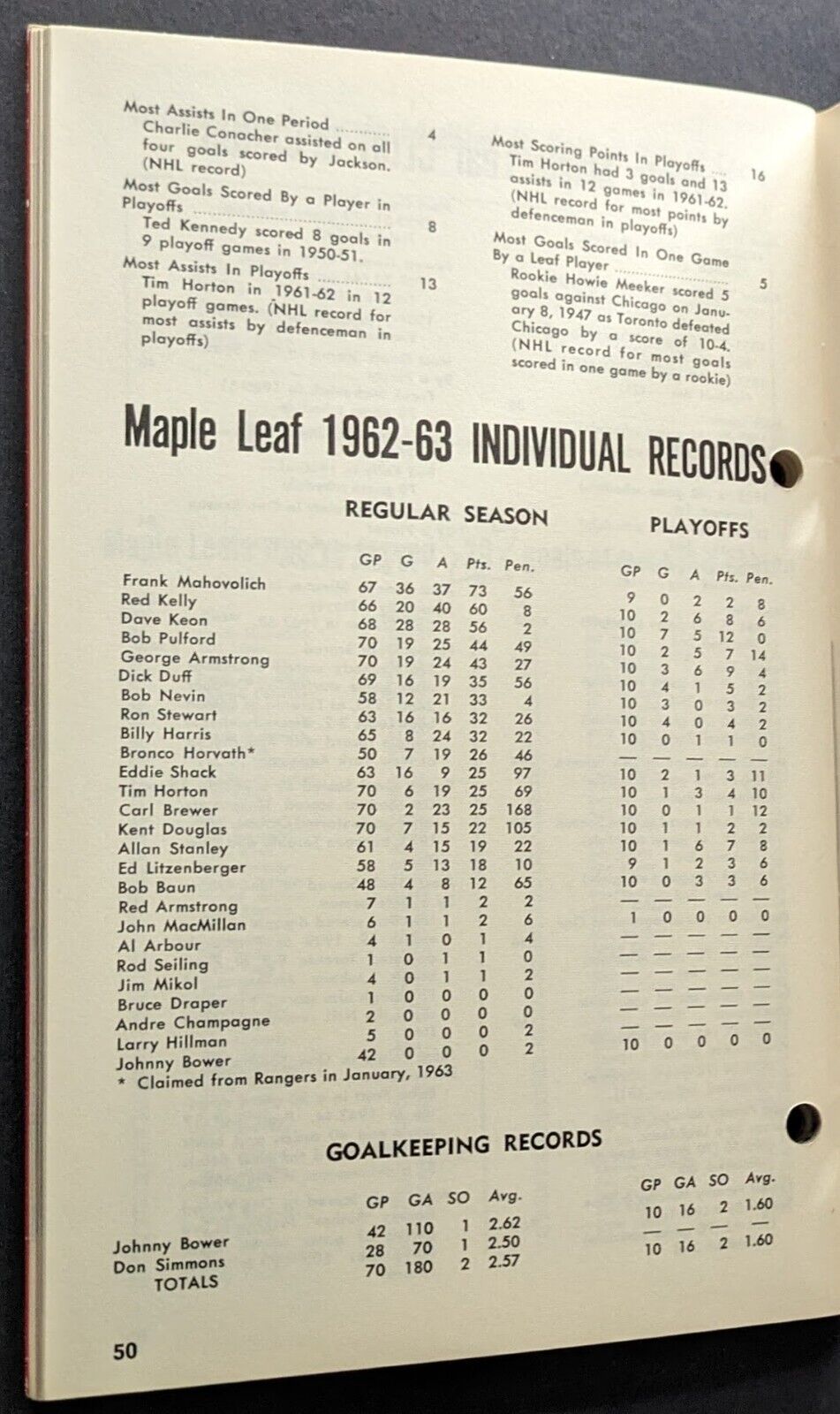 - 1963-1964 Toronto Maple Leafs Information Guide with Stanley Cup records