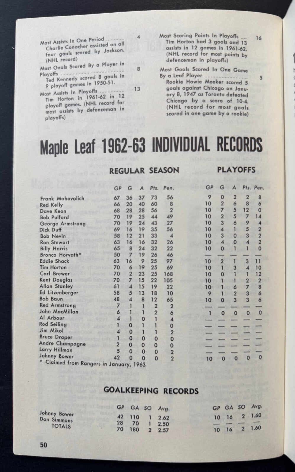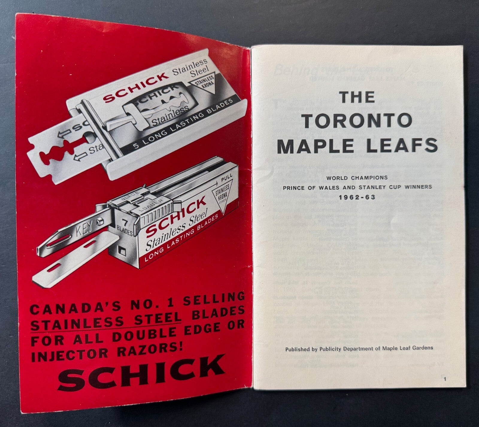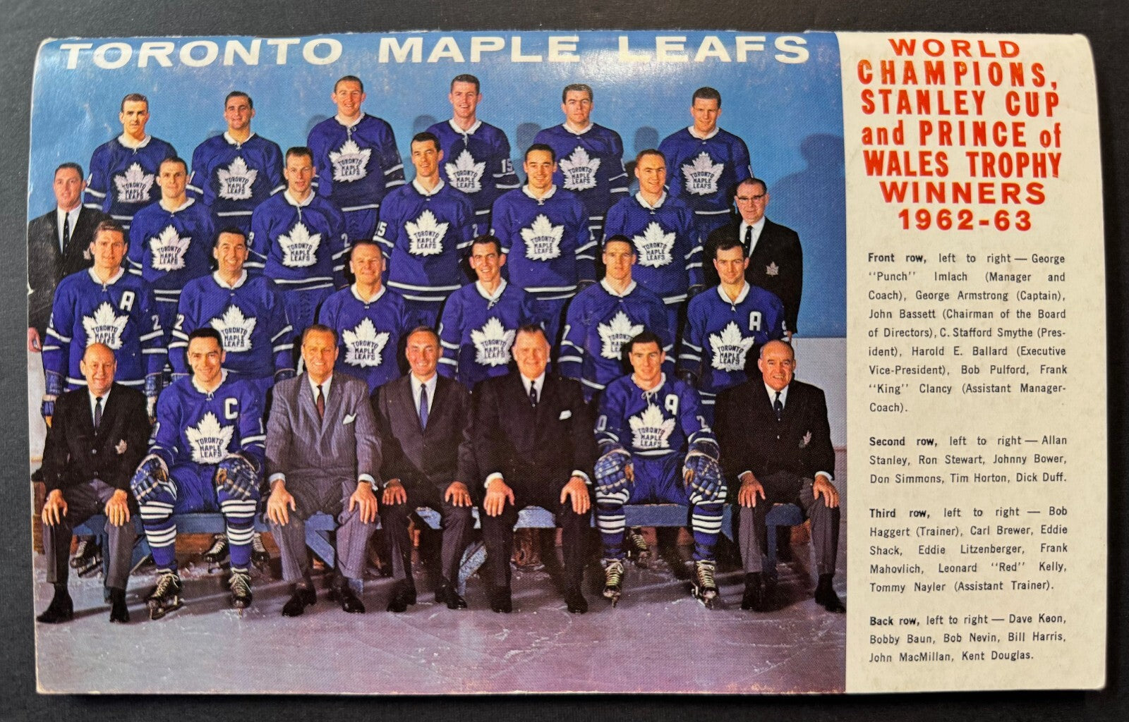 - Picture of the 1962-63 Stanley Cup winning team on back cover