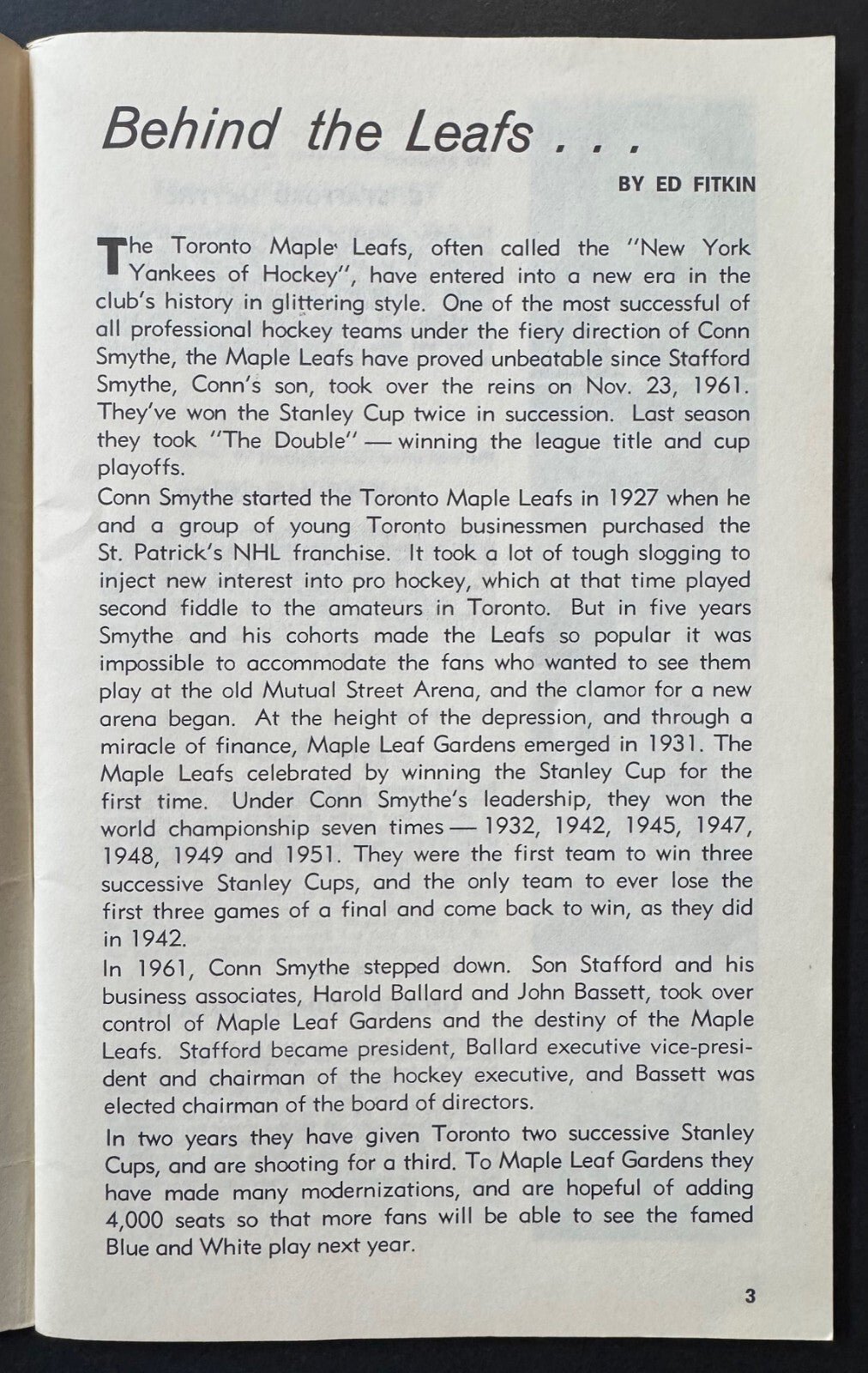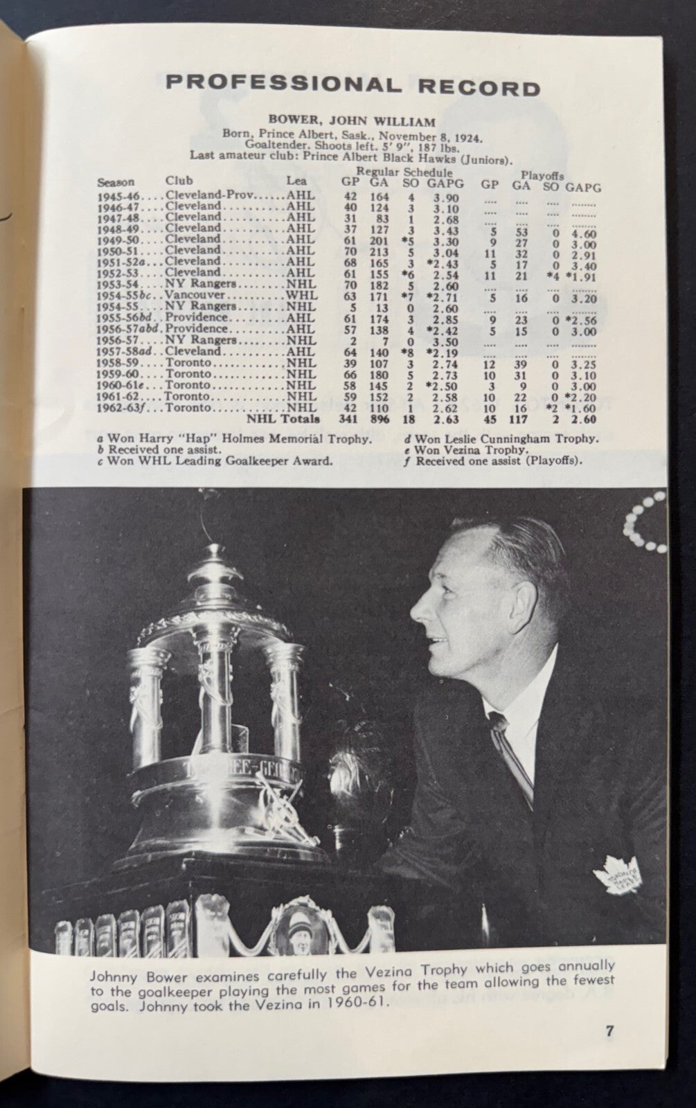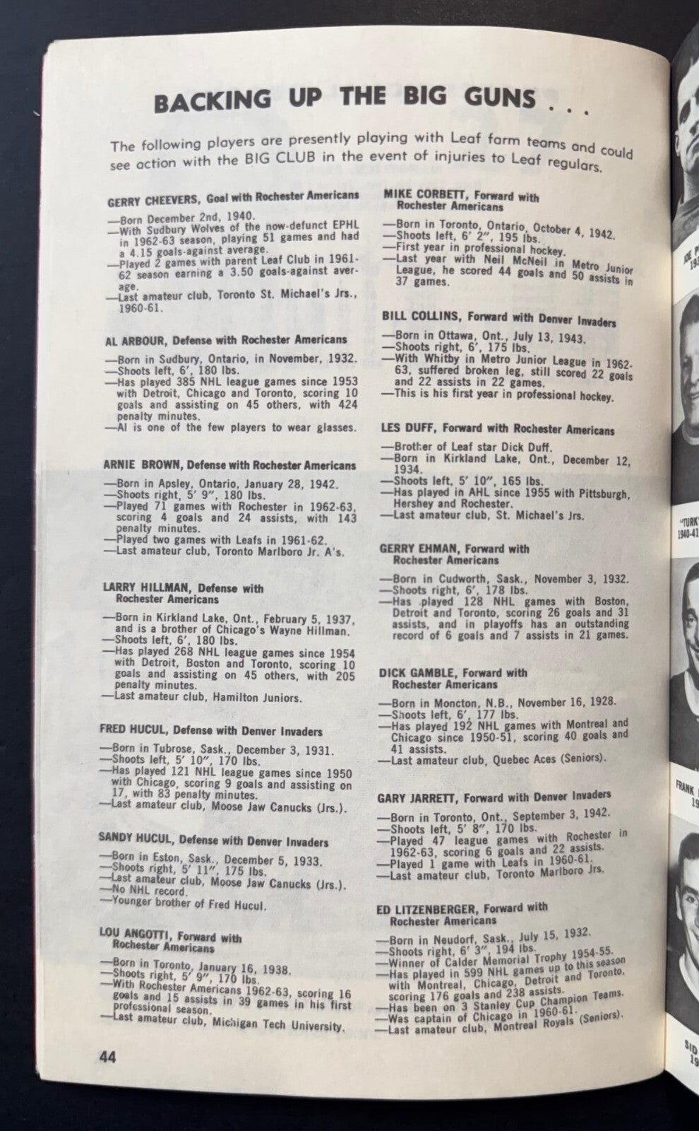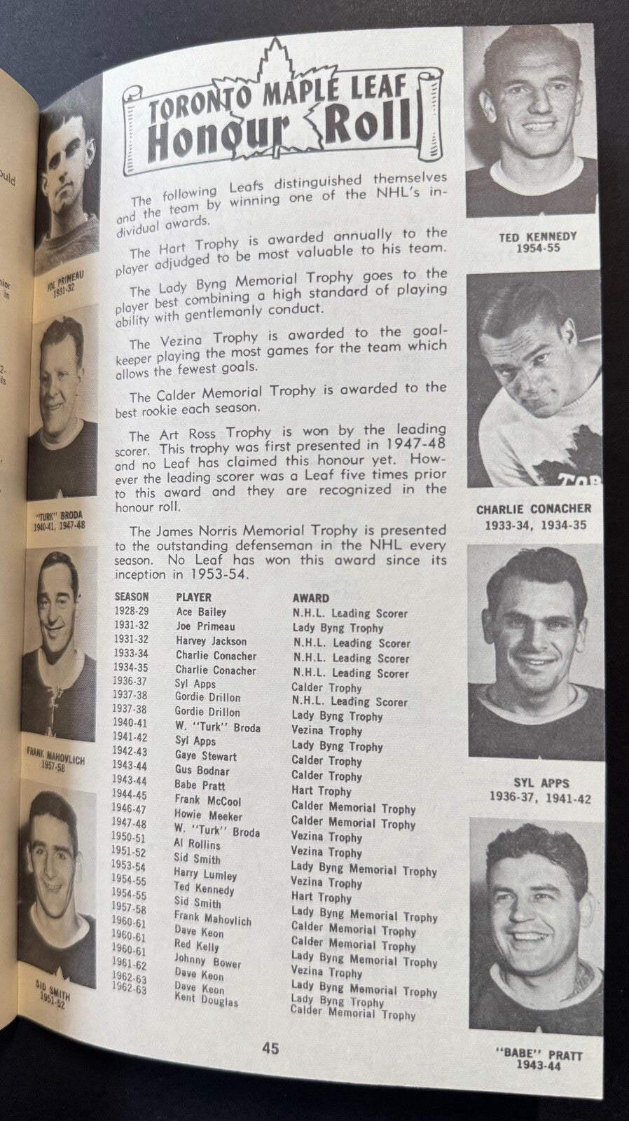 - Picture of the 1962-63 Stanley Cup winning team on back cover