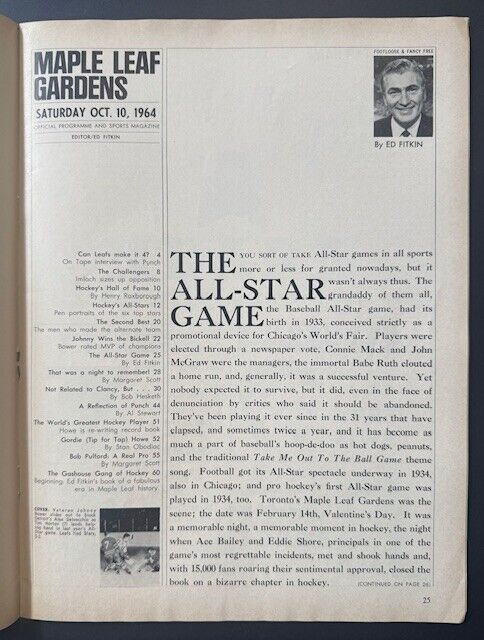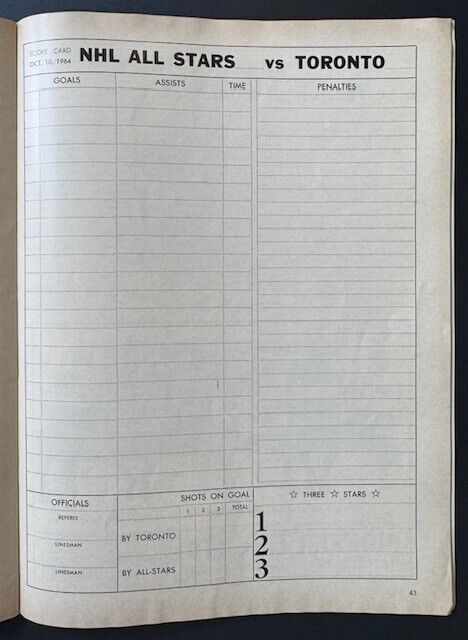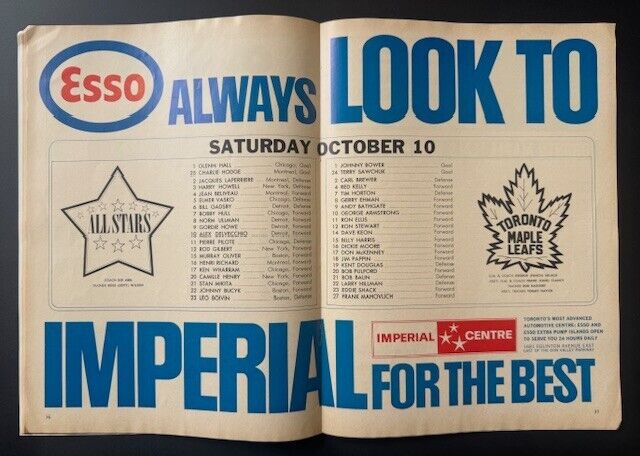 - Oct. 10, 1964 game at Maple Leaf Gardens. NHL All-Stars defeat the Toronto Maple Leafs 3-2