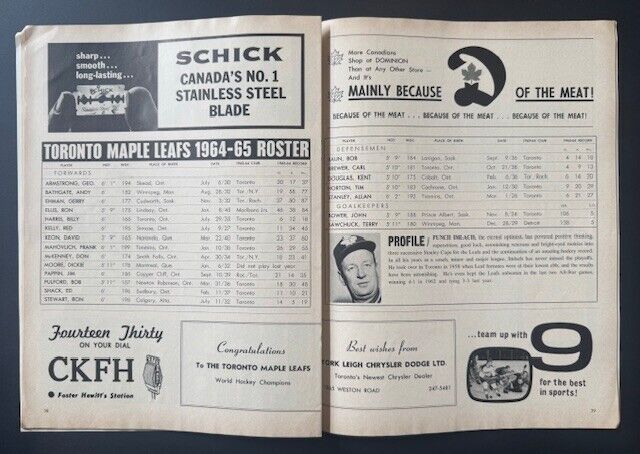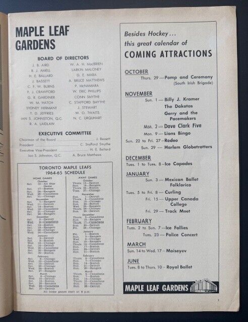 - 1964 Maple Leaf Gardens NHL All Star Game Program
