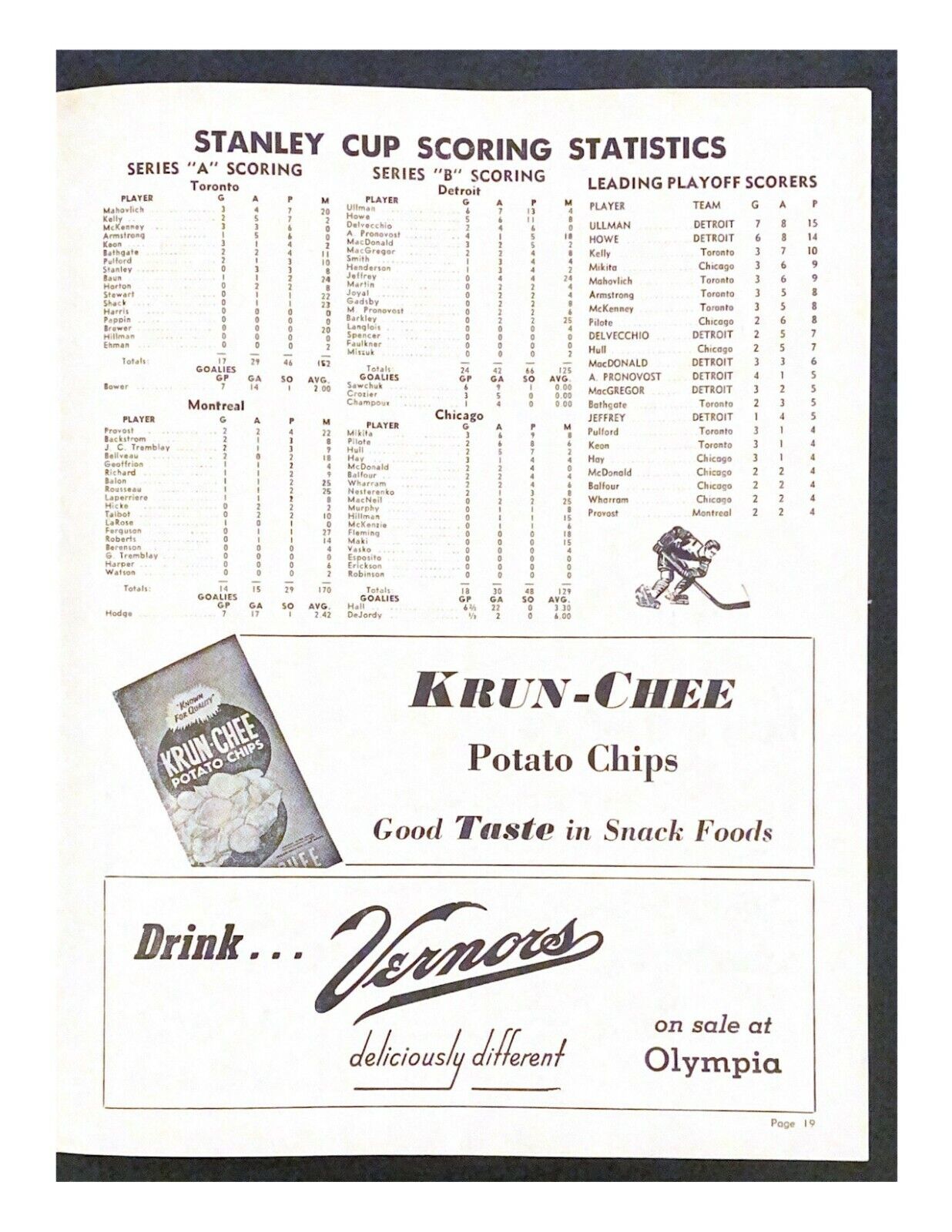 - Detroit goes up 3-0 in the 1st period, and the Leafs come back to tie only to have Delvecchio score the winner for Detroit with 17 seconds left