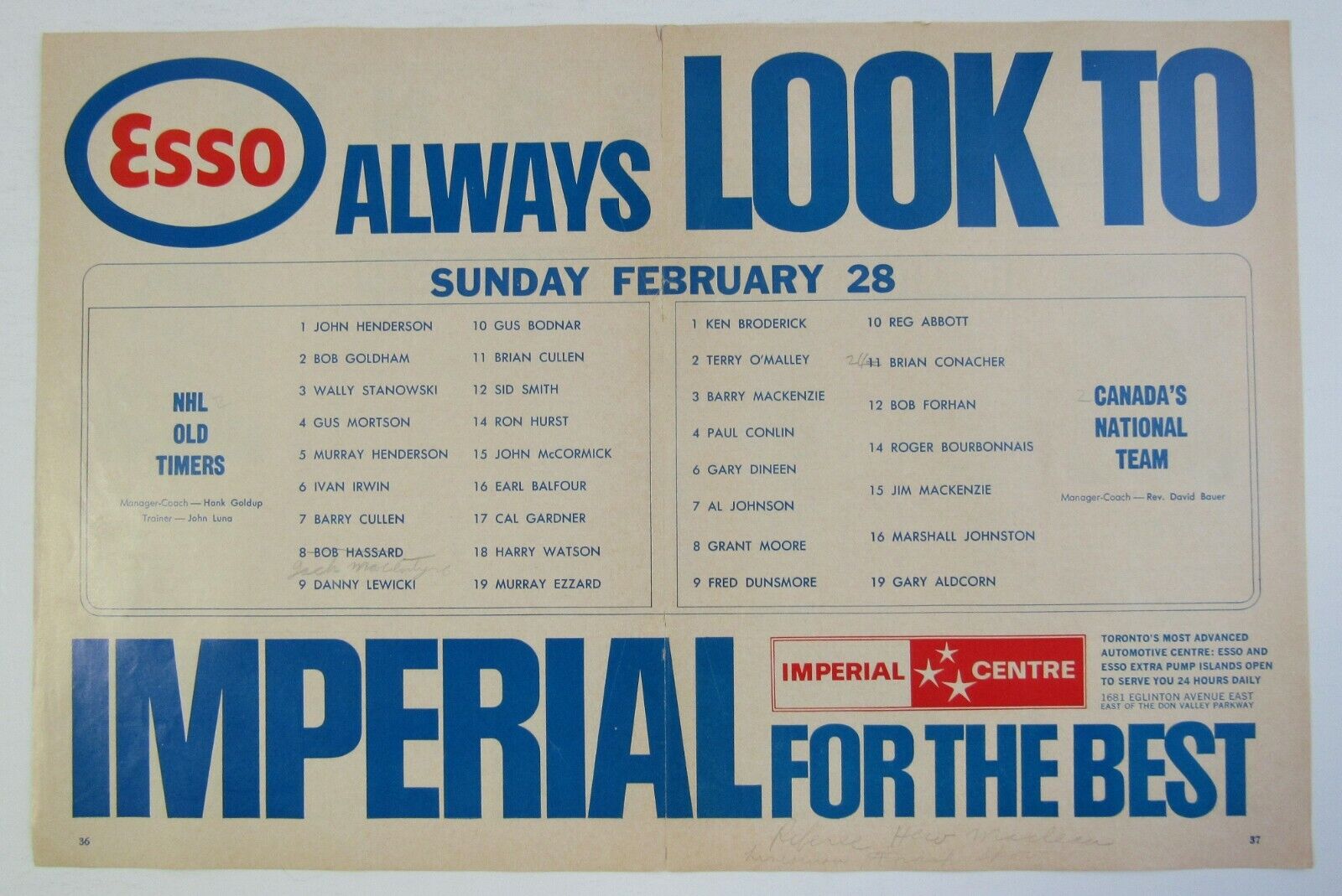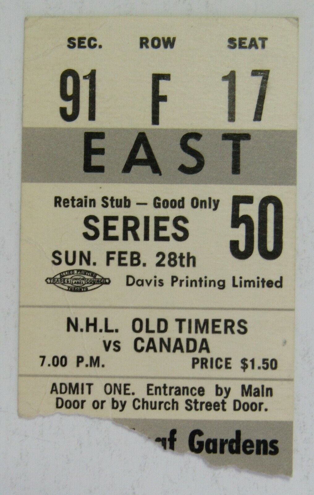 1965 Maple Leaf Gardens NHL Old-Timers vs Team Canada Lineup Sheet + Ticket Stub