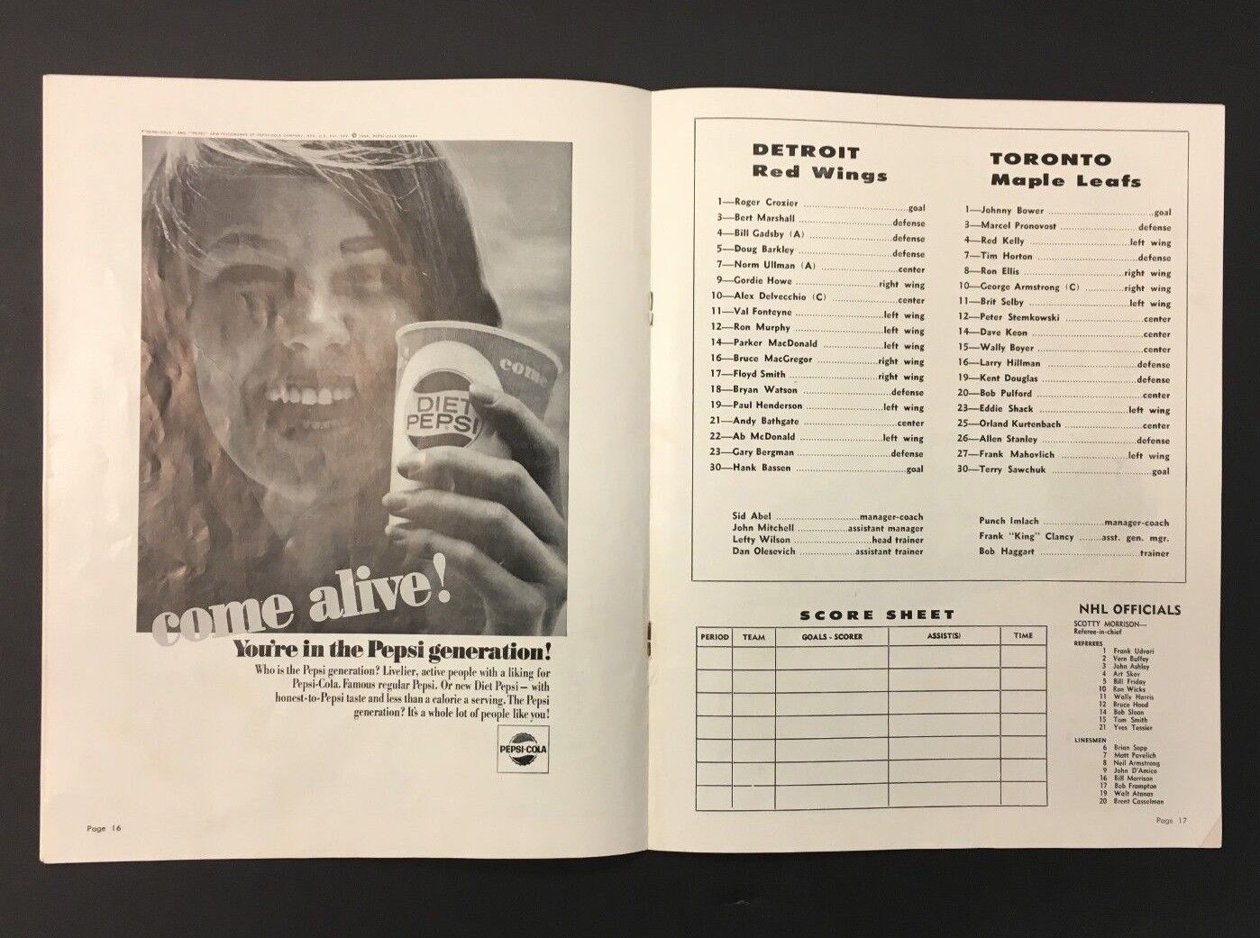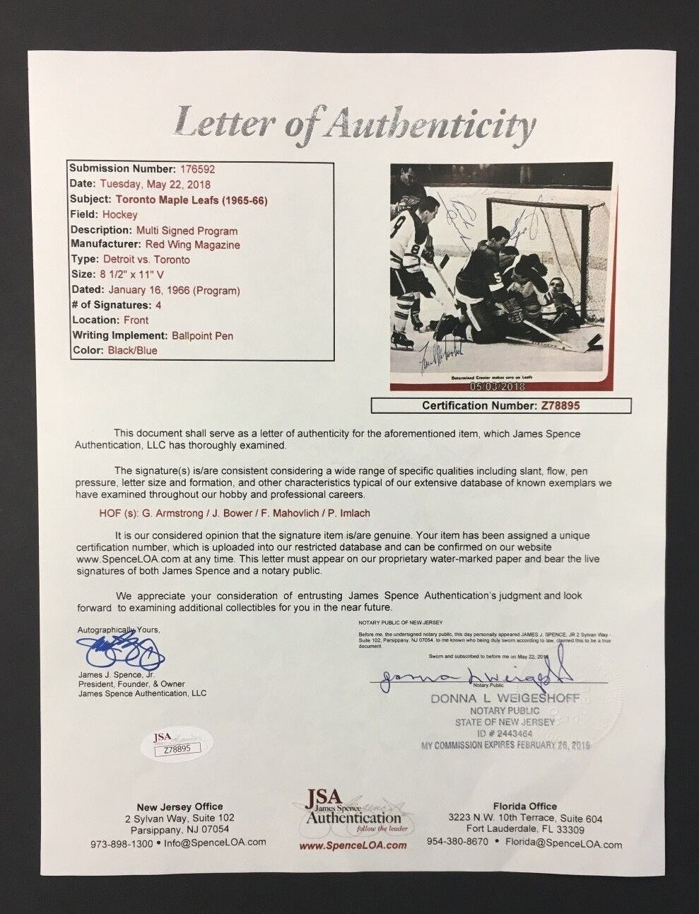 - January 16th 1966 Detroit Olympia Stadium NHL Hockey Program. Red Wings vs Toronto Maple Leafs. The cover is signed by Leaf coach Punch Imlach as well as players George Armstrong, Johnny Bower and Frank Mahovlich.